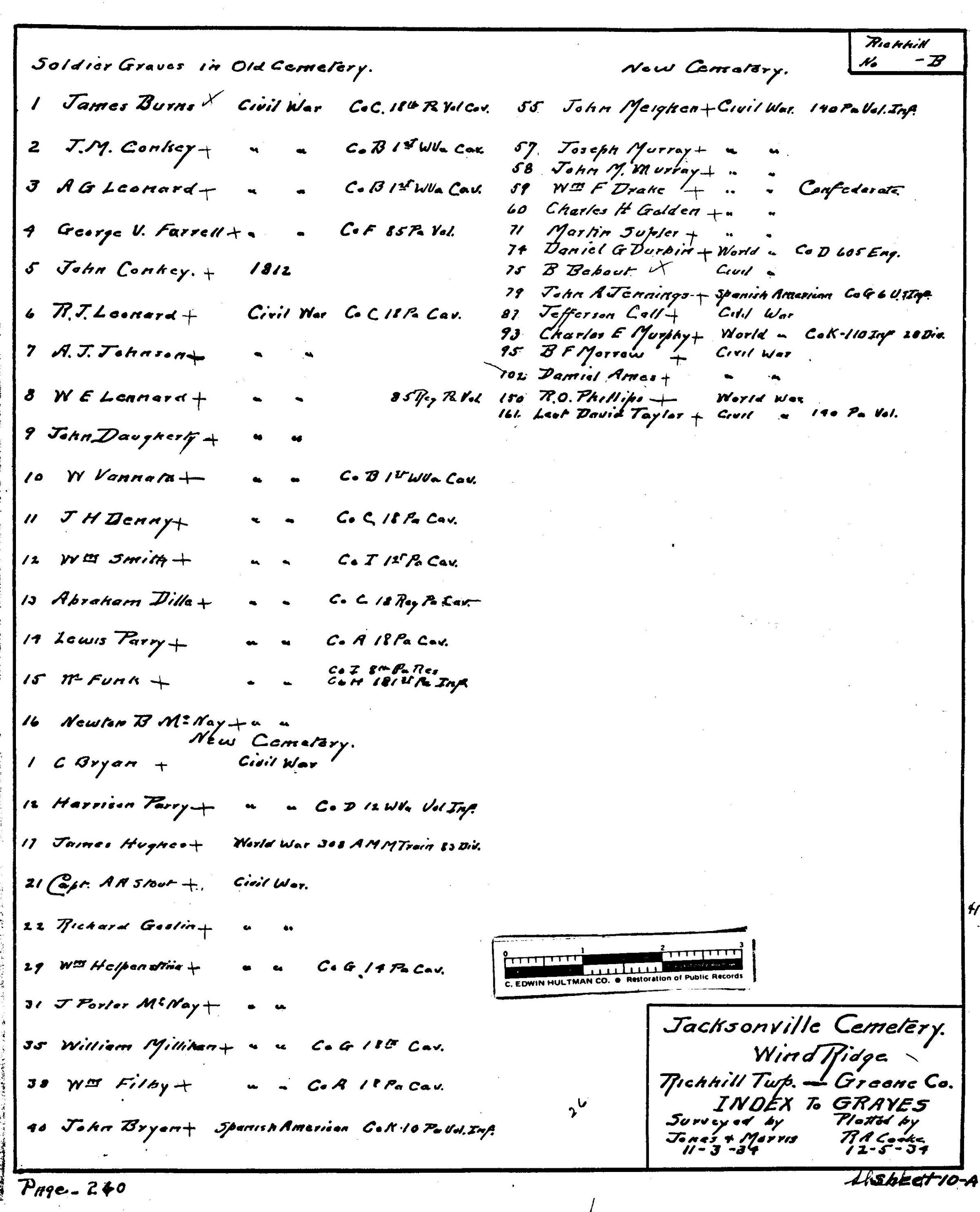Jacksonville - Richhill Township - Greene County - Pennsylvania - WPA Cemetery PlatEntry/Object ID