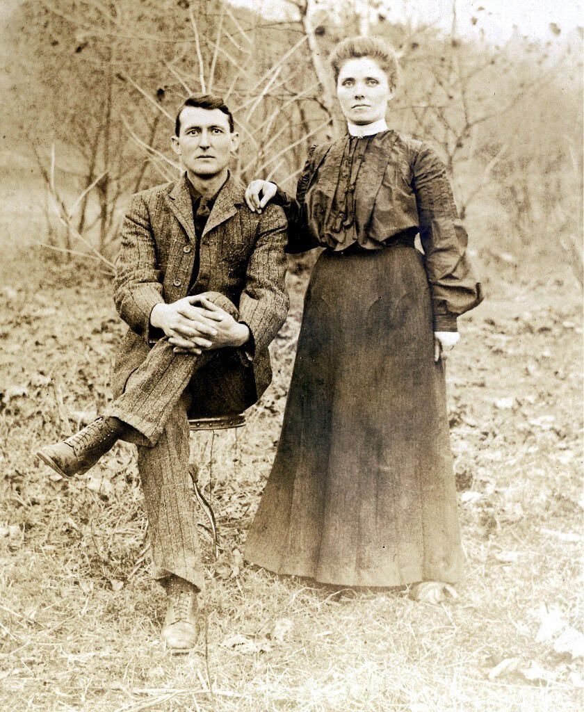 Source Citation: Jacob Eakin Clovis [1876-1942] and his wife, Susannah "Sudie" (Smith) Clovis [1872-1948], on their wedding day 18 November 1899, item no. HOYJ-AN002-0010, Athaliah Frances (Clovis) Hoy Collection, shared by James Michael Hoy, Greene Connections Archives Project (www.GreeneConnections.com).