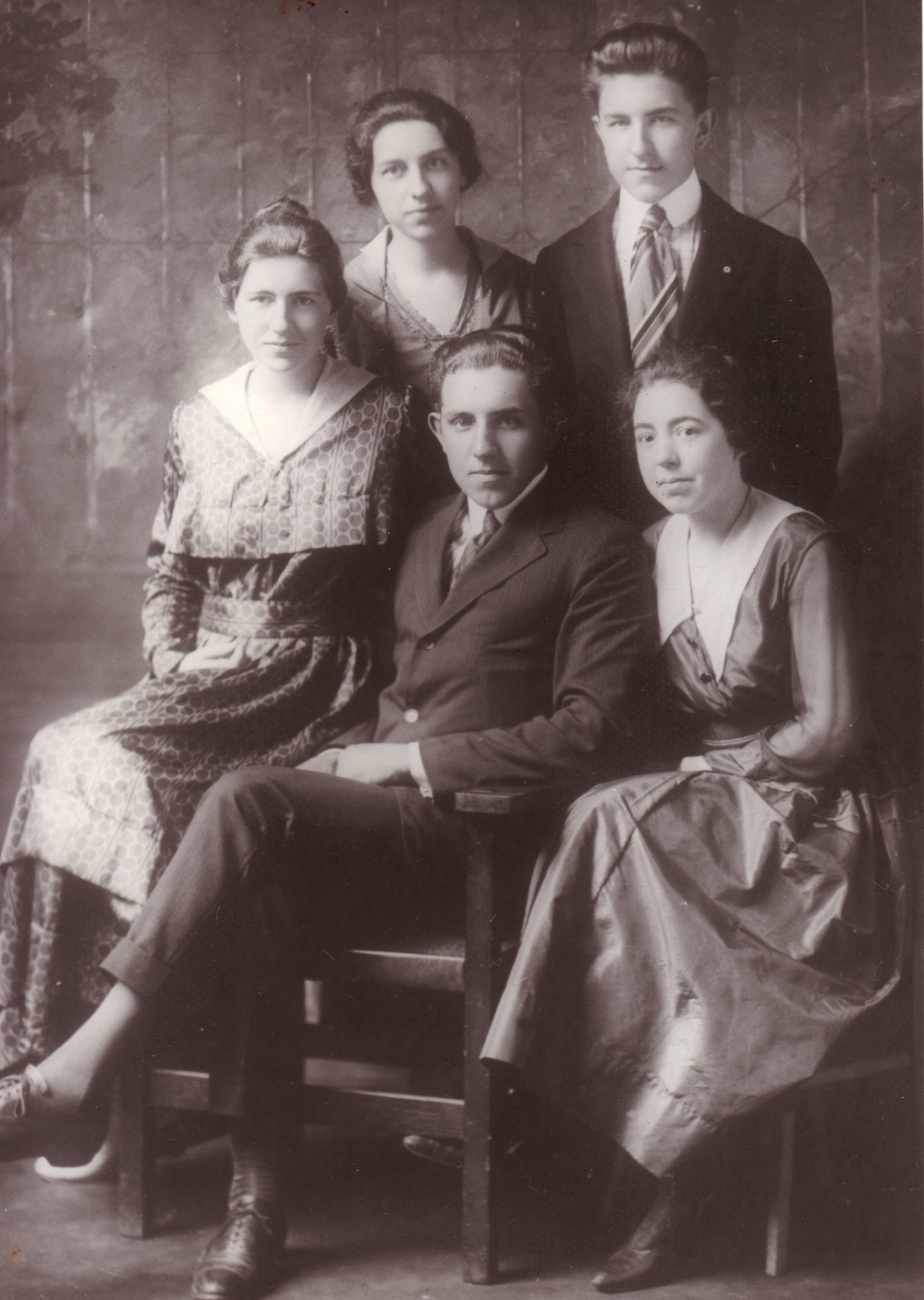 SOURCE CITATION: James Buchanan Rees and Elizabeth "Bettie" (Furr) Rees family, pictured [Left-Right]: STANDING IN BACK – Harriet Ellsworth (Rees) Harlow, Melvin Davis Rees, SEATED IN FRONT - Elsie Huffman (Rees) Toothman, James Harold Rees, Jessica Isabelle (Rees) Huston; circa 1915; item no. TOOL_AN002_0004, Rees Series, Melvin Lee Toothman Collection, Greene Connections Archives Project (www.GreeneConnections.com).