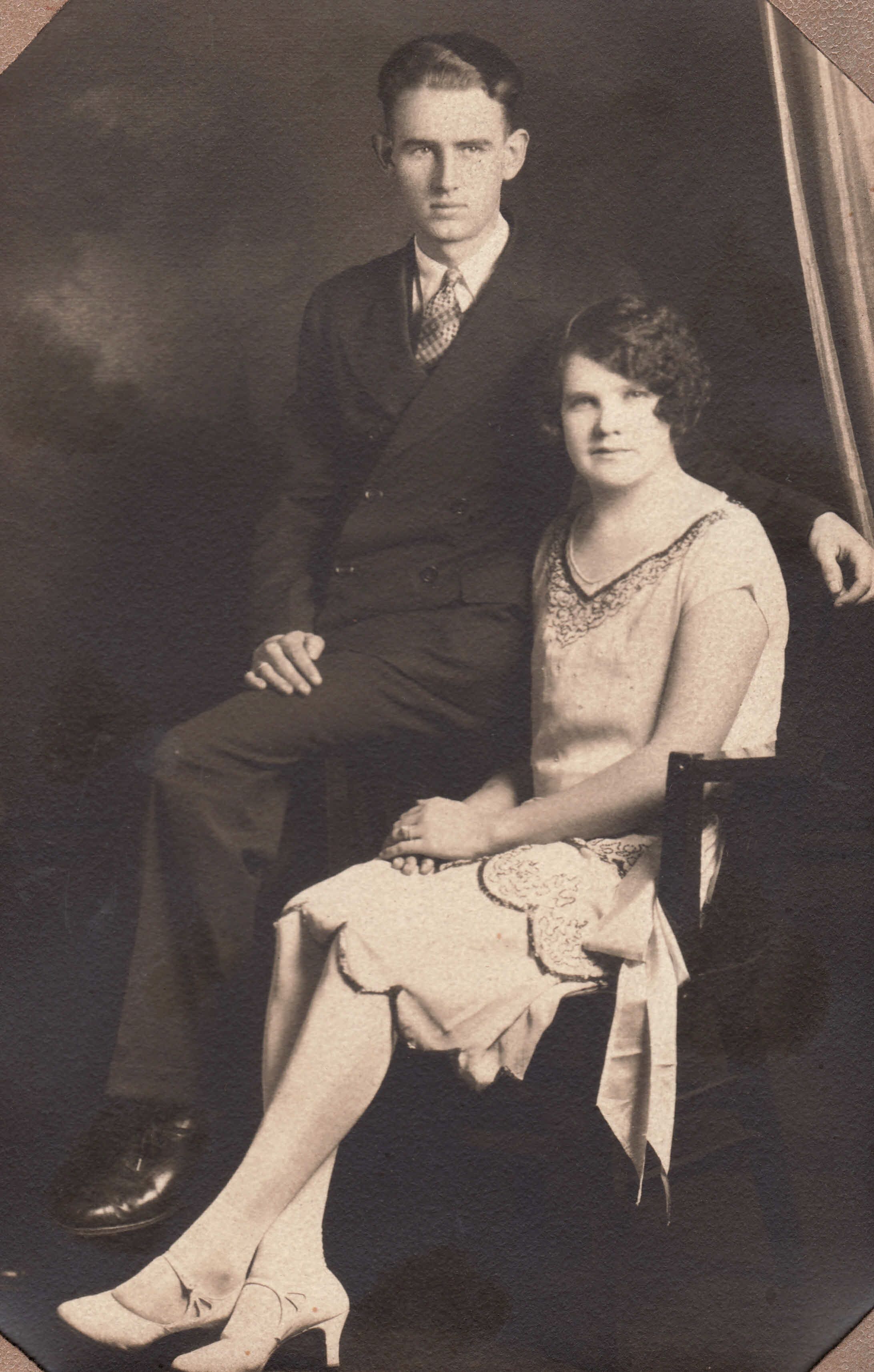 SOURCE CITATION: James Eugene Turner [1907-1978] and his wife, Ella Ruth (Bowler) Turner [1906-1996], most likely on their wedding day 30 May 1928; image by Clarence F. Long, Waynesburg, Pa.; item no. BOWL0019, Turner Series, Ella Ruth (Bowler) Turner Collection; Greene Connections Archives Project (GreeneConnections.com).