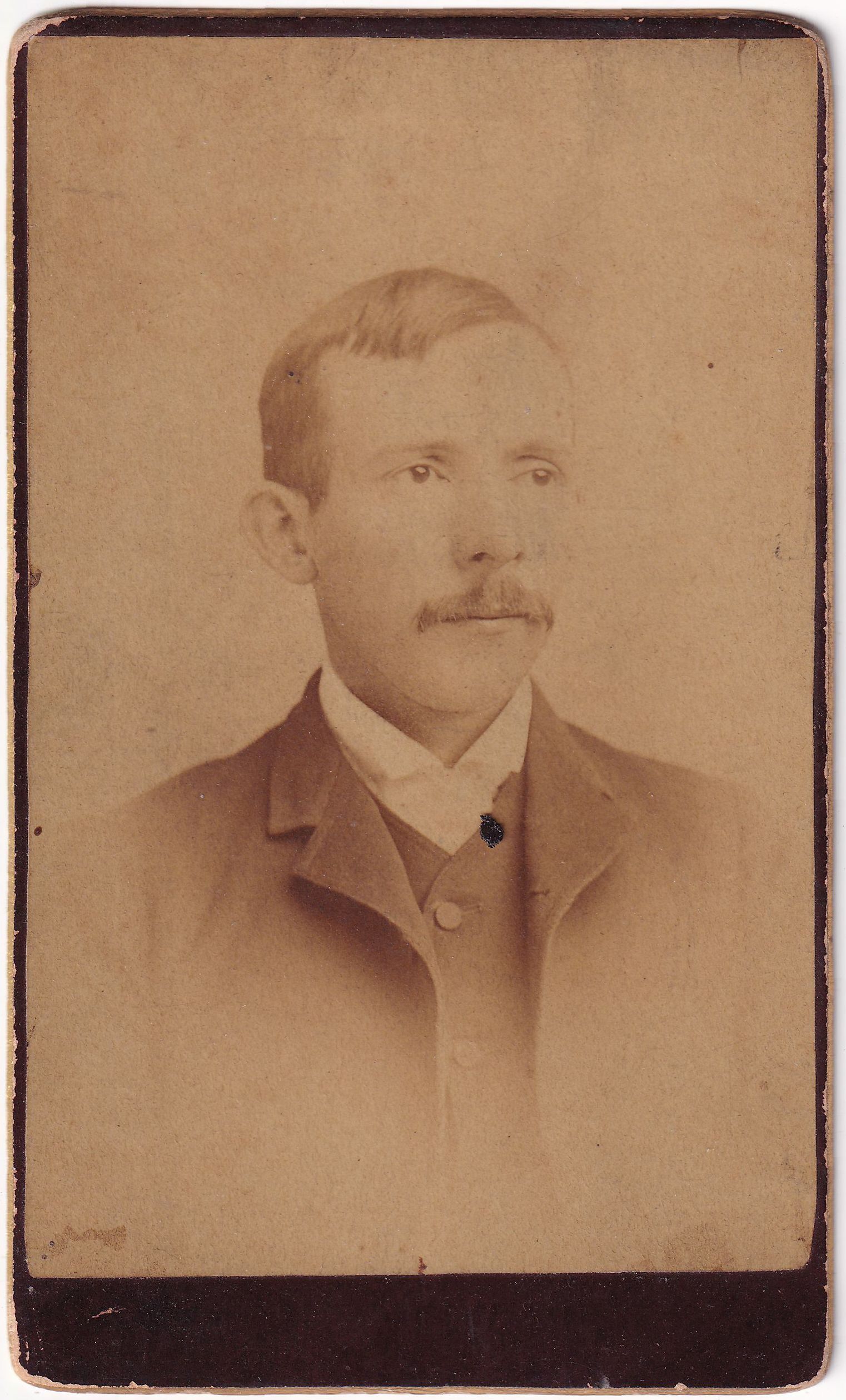 Carte de visite of James Lee McCullough [1864-1921] - husband of Sarah Abigail Ross. He was a U.S. Railway Postal Clerk, who was murdered in his mail car at the railroad yards in Pittsburgh, Allegheny County, Pennsylvania. (Source: Waynesburg Republican, 3 March 1921.)