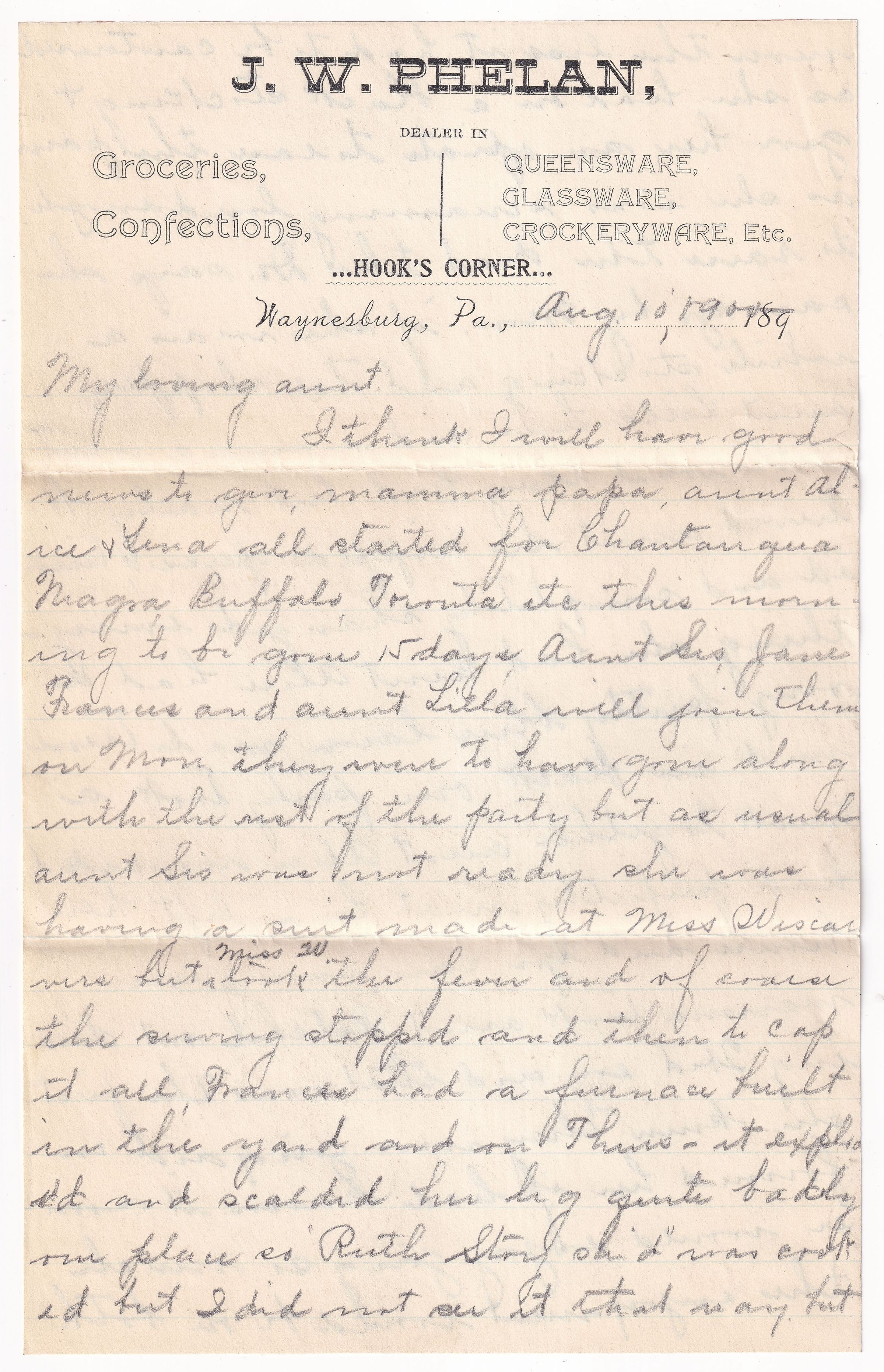 Jane M. Phelan (Waynesburg, Pa.) to Mary W. Denny (Paris, France), letter, 10 August 1900Entry/Object ID