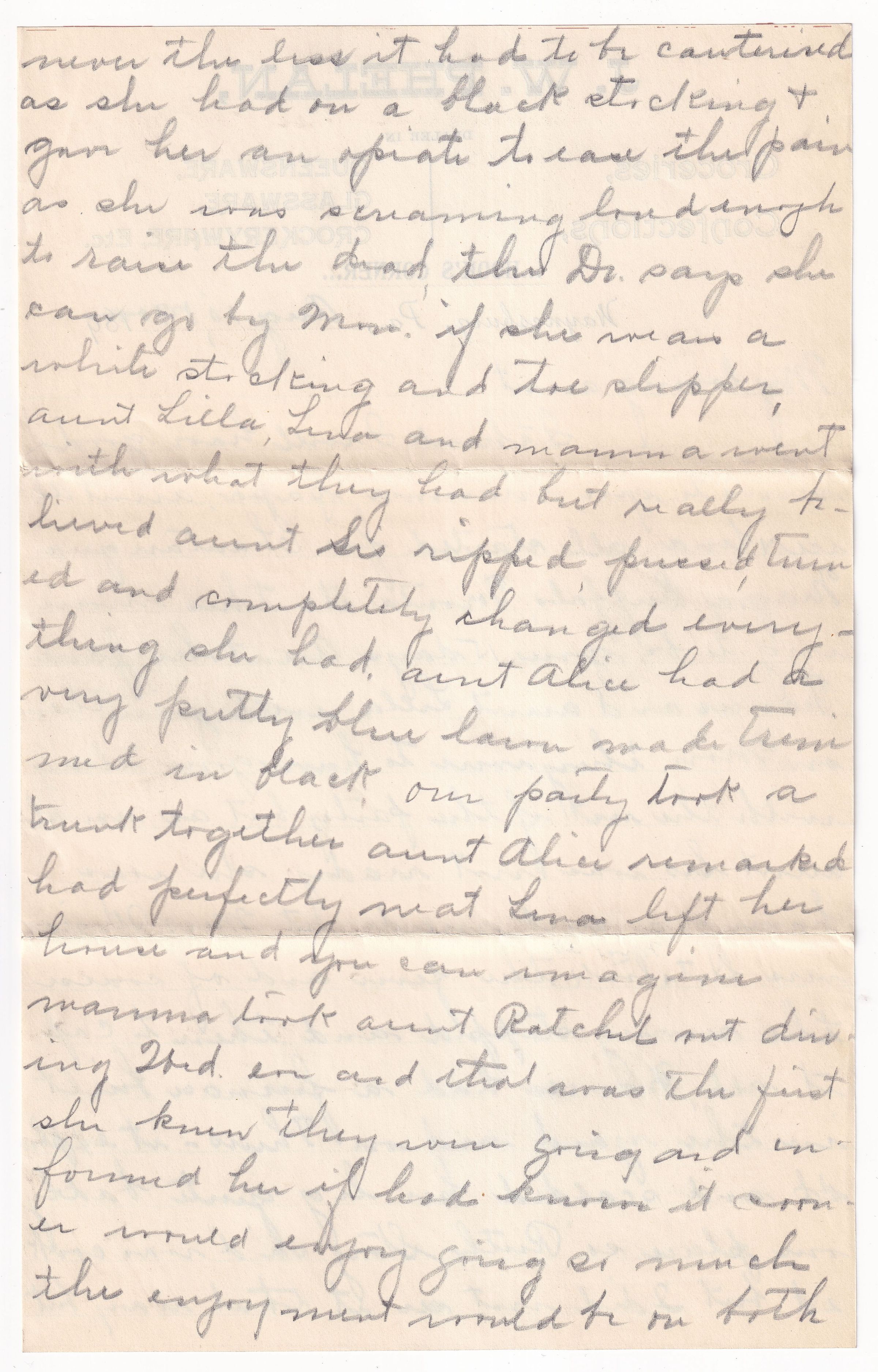 The author of this letter, Jane (Phelan) Drake [1877-1964], was the daughter of Joseph Walker Phelan and Hannah Denny. The letter was sent to her aunt, Mary Woodruff Denny [1858-1937], daughter of Meeker Woodruff Denny and Jane Luse.