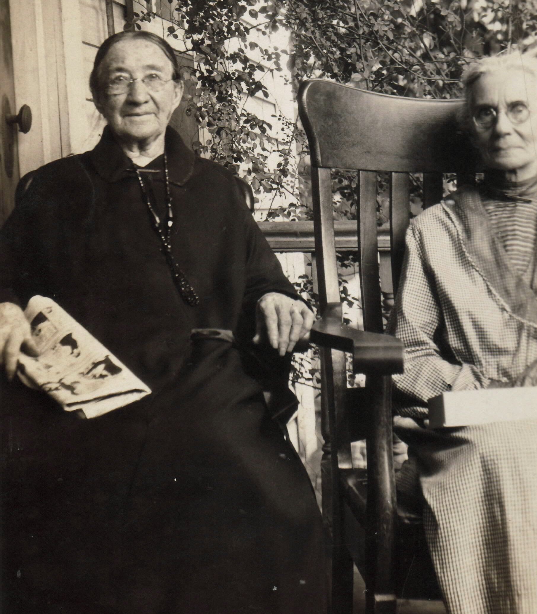 SOURCE CITATION: [Left-Right]: Jennie Conkey [1873-1936] and Margaret (Cook) Braddock [1849-1929]; circa 1920-1929; item no. CAND_AN001_0006, Cook Series, Candice Lynn Buchanan Collection; Greene Connections Archives Project (GreeneConnections.com).