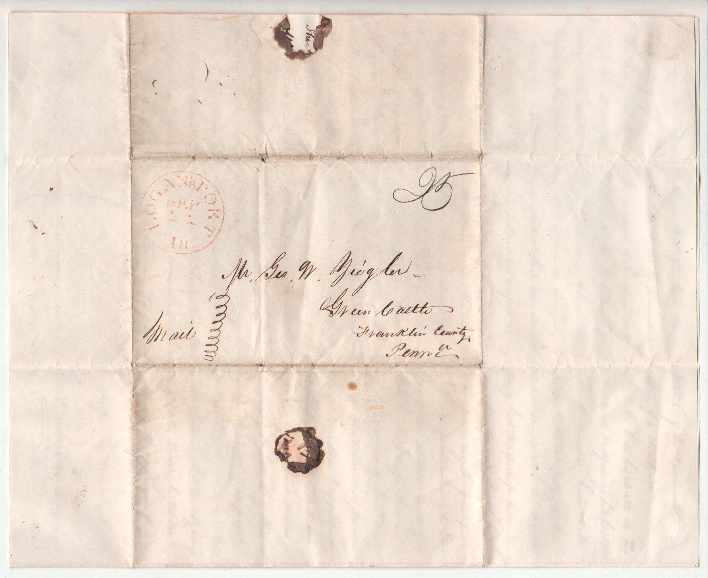 Source Citation: Jno. C. Buchanan, (Logansport, Indiana) to Geo. W. Ziegler (Green Castle, Pennsylvania), letter, 21 September 1843, item no. CAND-AN004-DOCU-0006, Candice Lynn Buchanan Collection, Greene Connections Archives Project (www.GreeneConnections.com).