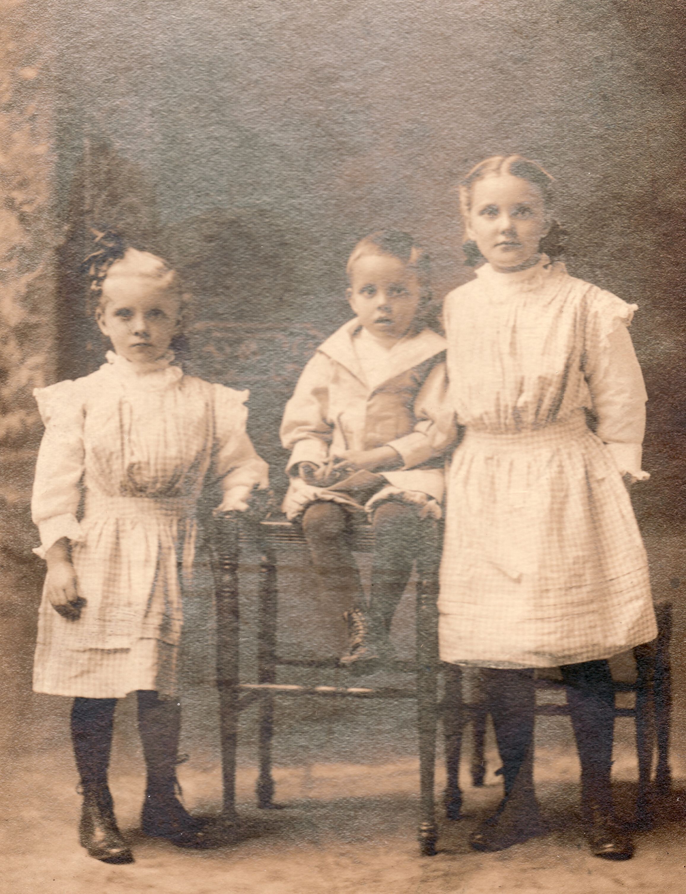SOURCE CITATION: Three oldest children of Joel Freeman Byers and Anna (Cowell) Byers, pictured [Left-Right]: Nellie (Byers) Guesman [1904-1999], Robert Smith Byers [1906-1936], Louise "Lou" (Byers) Campbell [1902-1970]; circa 1910, image by Downs Studio, Uniontown, Pa.; item no. WHET_AN001_0001_0015, Robert Dewayne and Margery Ellen (Moore) Whetzel Collection, Greene Connections Archives Project (GreeneConnections.com).