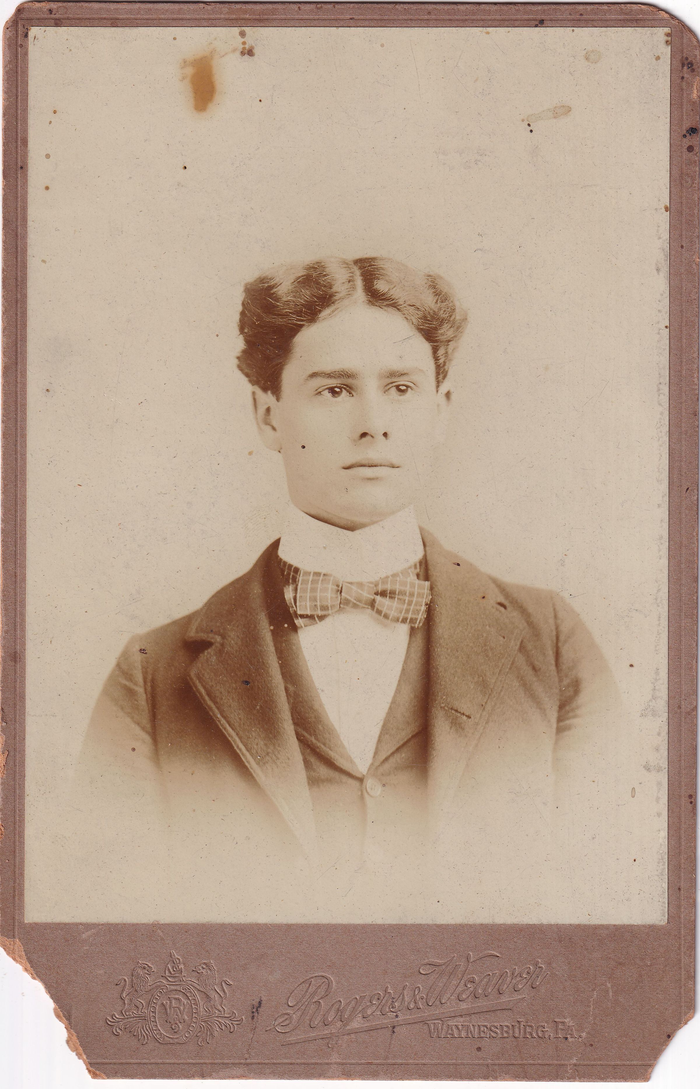 SOURCE CITATION: John Harvey Zimmerman [1879-1915]; circa 1890-1900, image by Rogers & Weaver, Waynesburg, Pa.; item no. MORS-AN002-0001, Zimmerman Series, Ruth Cecilia (Morris) (Shultz) Minor Collection; Greene Connections Archives Project (GreeneConnections.com).