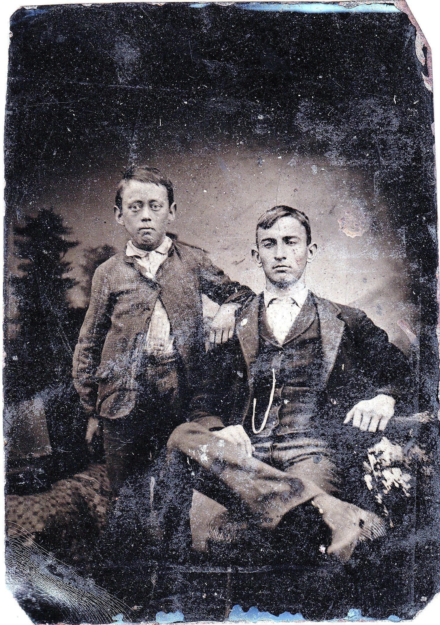 SOURCE CITATION: [Left-Right]: John Henry Debolt [1884-1979] and James Corbly McFarland [1875-1945]; circa 1890-1900; item no. MILB-AN002-0004, McFarland Series, Mary (Vance) McCann Collection, shared by her grandson, William Marshall Miller; Greene Connections Archives Project (www.GreeneConnections.com).