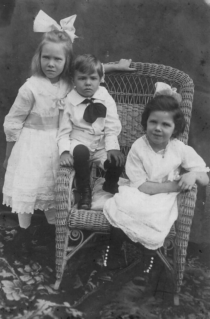 SOURCE CITATION: [Left-Right]: Doris M. (Isiminger) Hill [1913-1998], Harold R. Isiminger [1915-1975], Virginia Louise (Isiminger) Headley [1914-2005] - children of John L. Isiminger and Goldie Grace Applegate; circa 1915-1920; item no. HEAD-AN002-0003, Isiminger Series, Lawrence Headley Collection, Greene Connections Archives Project (www.GreeneConnections.com).