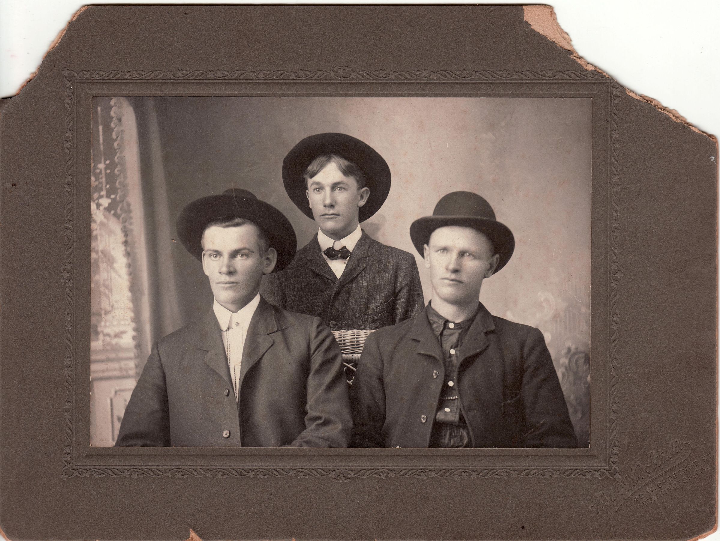 "Dad, Uncle Robert, & Uncle Charley. Oct. 10, 1904."