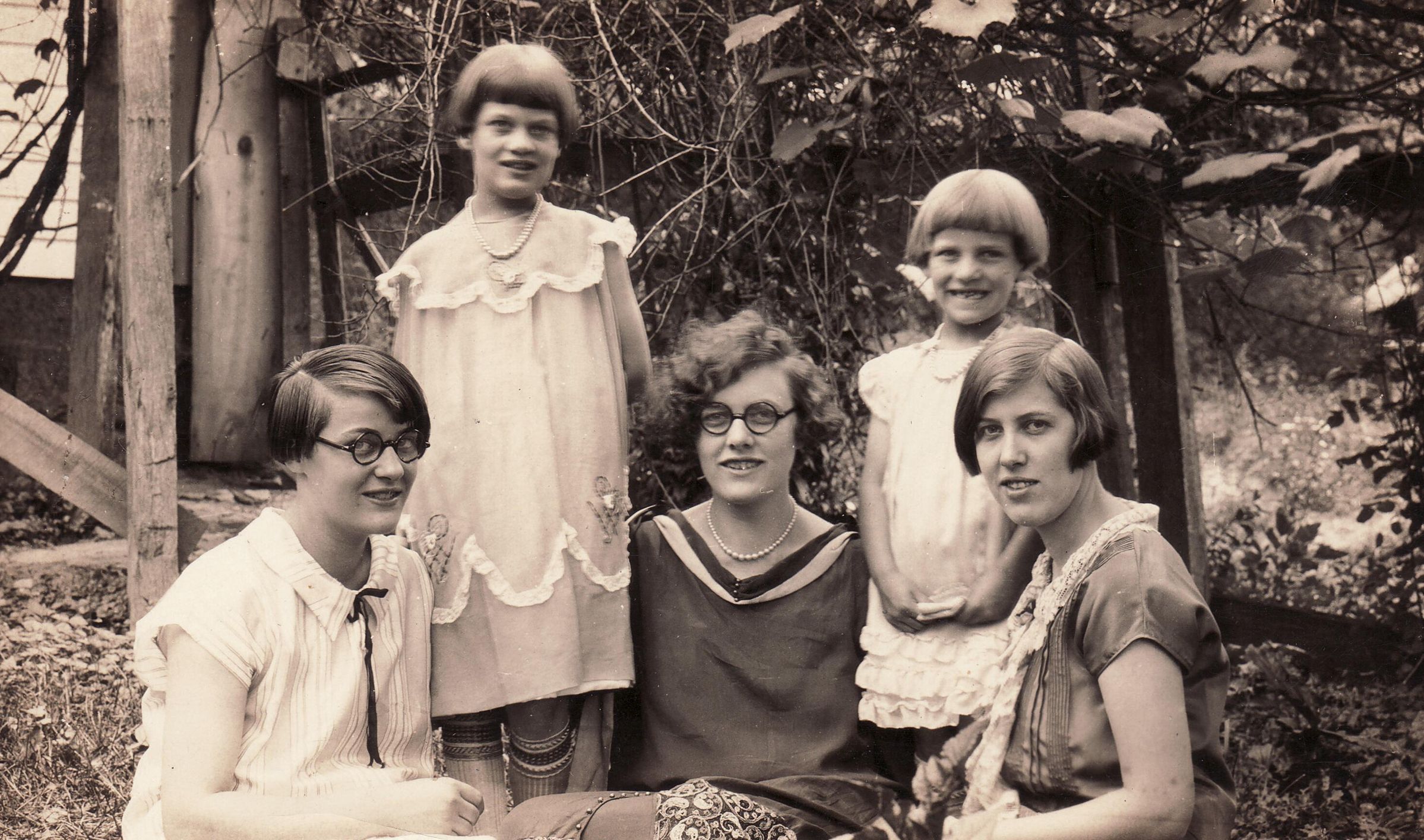SOURCE CITATION: [Left-Right]: Veva Gertrude Clutter [1909-1999], Jamella Clutter [1916-1987], Silvie Olive (Clutter) Swart [1905-1992], Goldie Clutter [1919-2003], Etta Elverta Clutter [1907-1965] - daughters of John Milton Clutter and Minnie Belle Wise; circa 1925-1930; item no. SUPL-AN005-0009, Clutter Series, Wayne Carl Swart Collection, Greene Connections Archives Project (www.GreeneConnections.com).