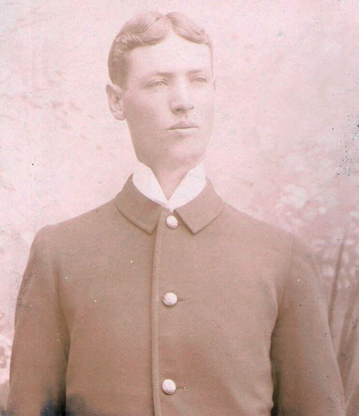 Source Citation: Johnson Album 01, Photo 03 - Harry James Rhodes in his Spanish American War uniform, item no. JAKB_AN002_0003, Donna (Johnson) Jakobsson Collection, Greene Connections Archives Project (www.GreeneConnections.com).