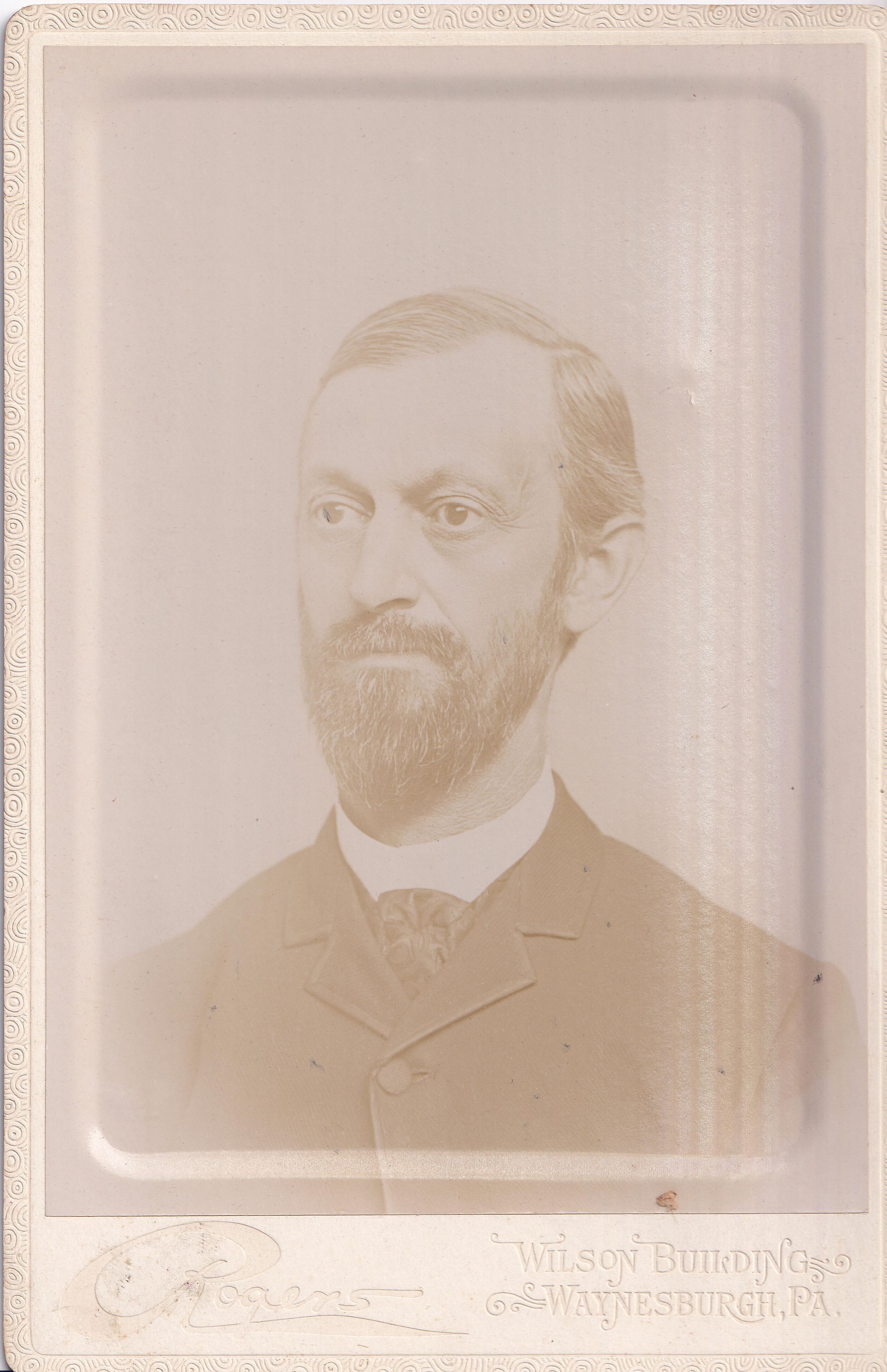 SOURCE CITATION: Joseph Gwynne Ritchie [1834-1891], President of Waynesburg & Washington Railroad - husband of Philinda Andrew [1847-1919]; circa 1880-1900, image by Rogers, Wilson Building, Waynesburgh, Pa.; item no. CGSP-AN014-0005, Anna Mary (Ritchie) Armstrong Series, donated by Suzanne Floyd, 2022; Cornerstone Genealogical Society Collection, Greene Connections Archives Project (www.GreeneConnections.com).