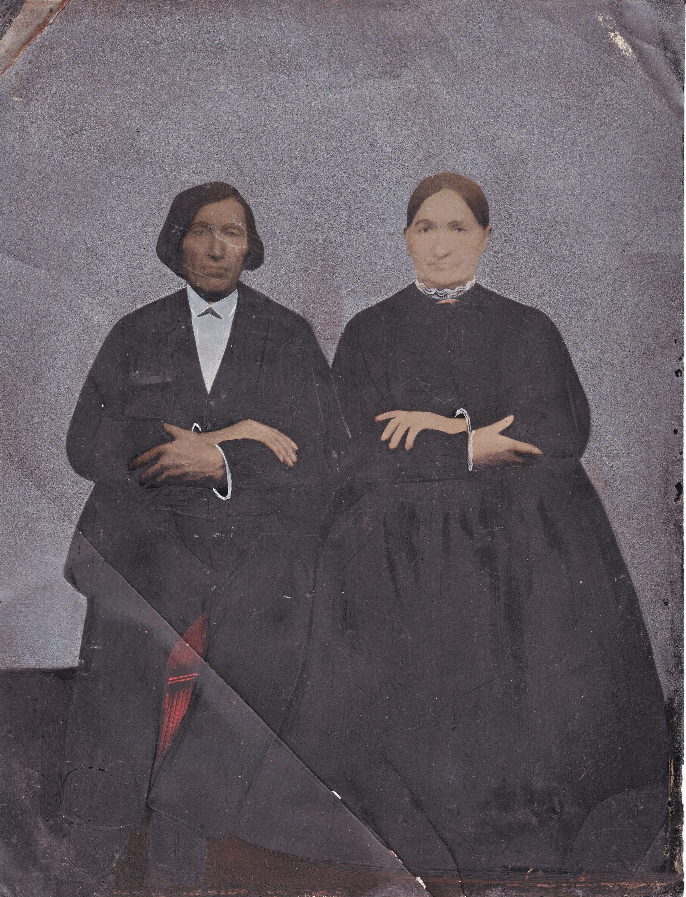 Source Citation: Circa 1860, hand-painted tintype photograph of Joseph Taylor [1792-1868] and his wife, Elizabeth (Wilson) Taylor [1792-1862], item no. COLE-AN007-0001, Taylor Series, Terry Cole Collection, Greene Connections Archives Project (www.GreeneConnections.com).