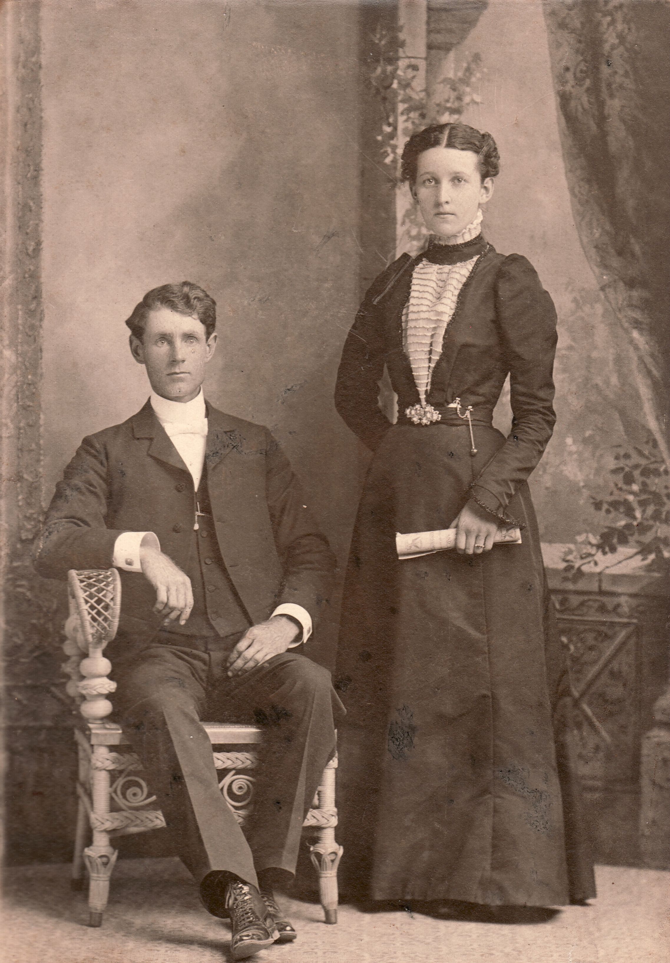 SOURCE CITATION: Joseph Turner [1871-1953] and his wife, Ida Mae (Acklin) Turner [1877-1953], most likely on their wedding day 10 June 1899; image by Rogers & Weaver, Waynesburg, Pa.; item no. BOWL0017, Turner Series, Ella Ruth (Bowler) Turner Collection; Greene Connections Archives Project (GreeneConnections.com).