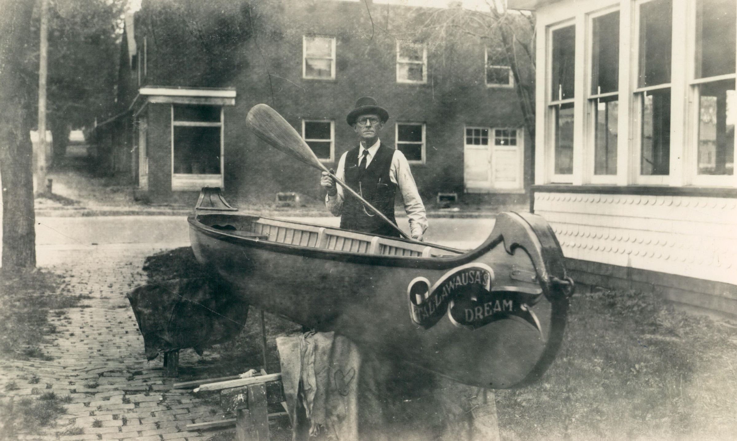 Source Citation: Joseph Warren Jacobs in front of the Jacobs home at the east corner of First and Washington Streets, Waynesburg, Greene County, Pennsylvania; circa 1920, image by William E. S. Fletcher; item no. CGSP_AN007_0027, Cornerstone Genealogical Society Collection; Greene Connections Archives Project (GreeneConnections.com).