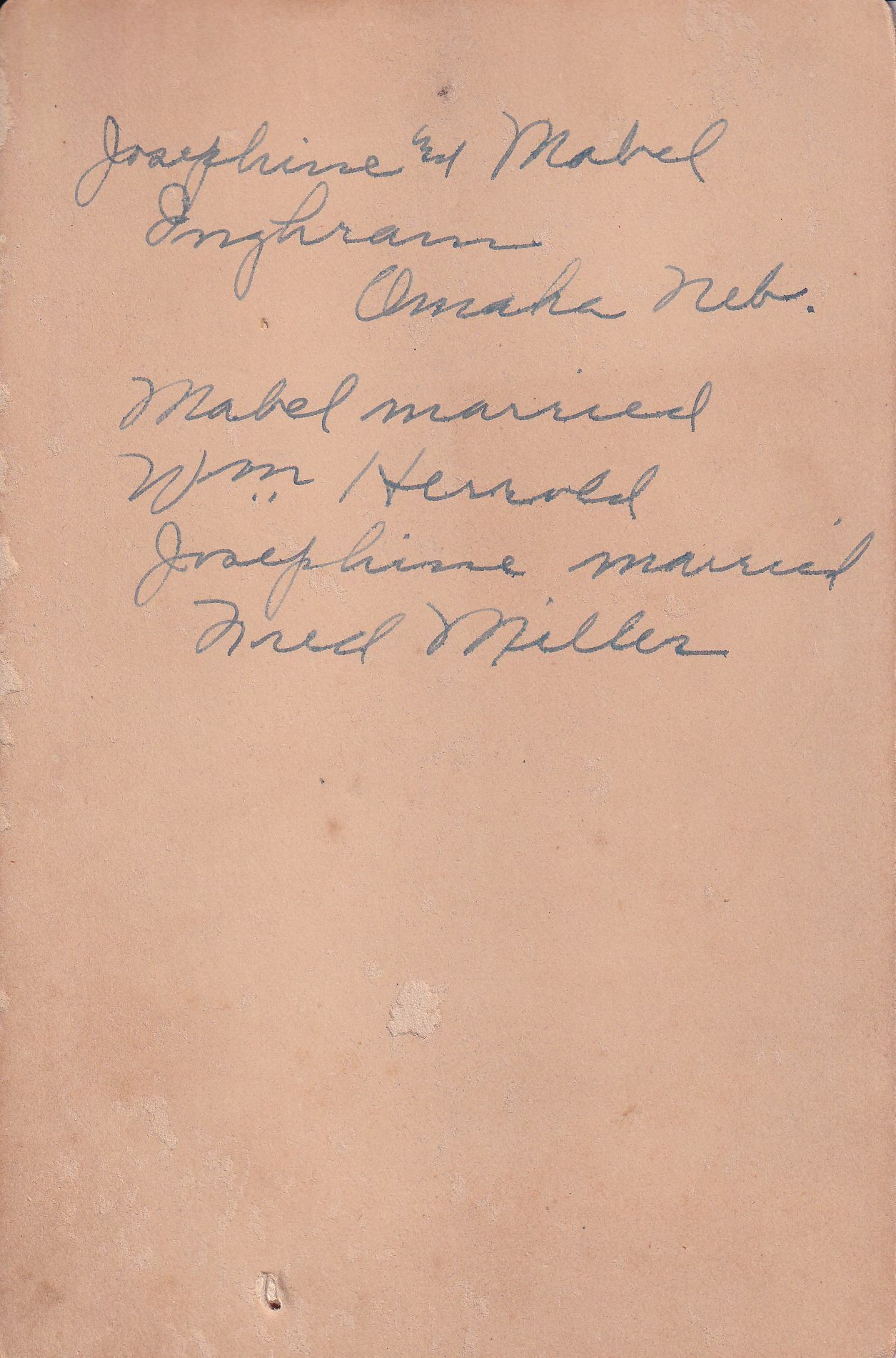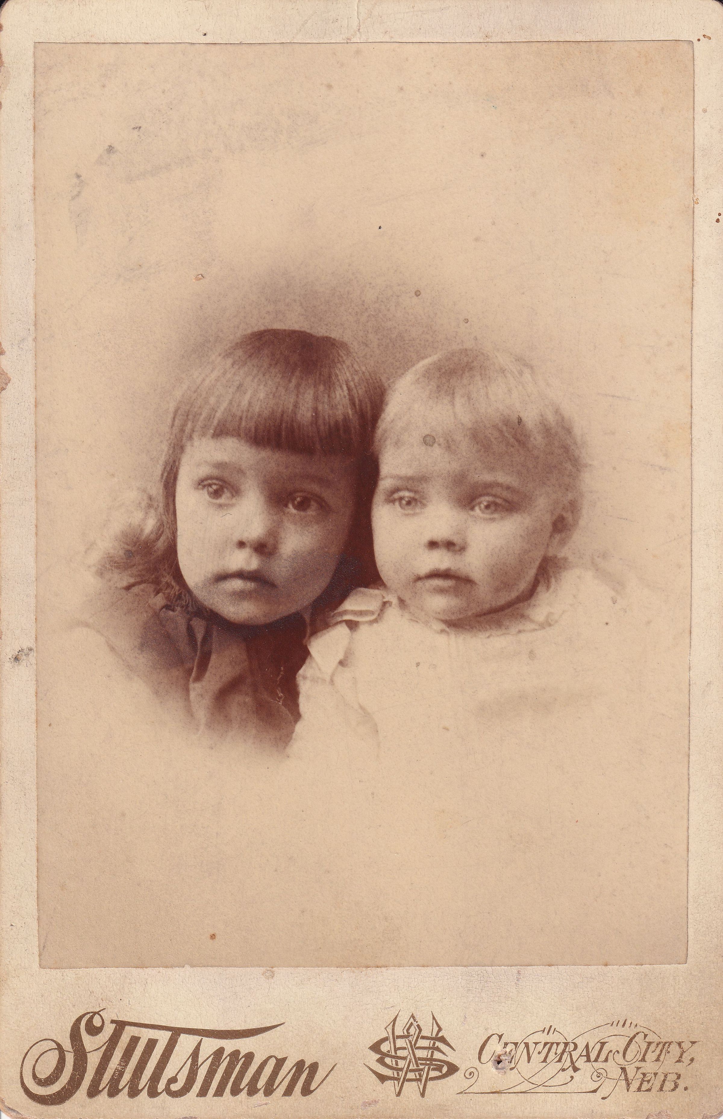 SOURCE CITATION: [Left-Right] Josephine (Inghram) Miller [1888-1984] and Mabel (Inghram) Herrold [1891-1973] - daughters of Thomas Gordon Inghram and Sarah Jane Hedge; circa 1892, image by Stutsman, Central City, Neb.; item no. CGSP-AN016-0006, Frances Bell (Inghram) Huffman Series, donated by Cynthia Grant; Cornerstone Genealogical Society Collection; Greene Connections Archives Project (GreeneConnections.com).