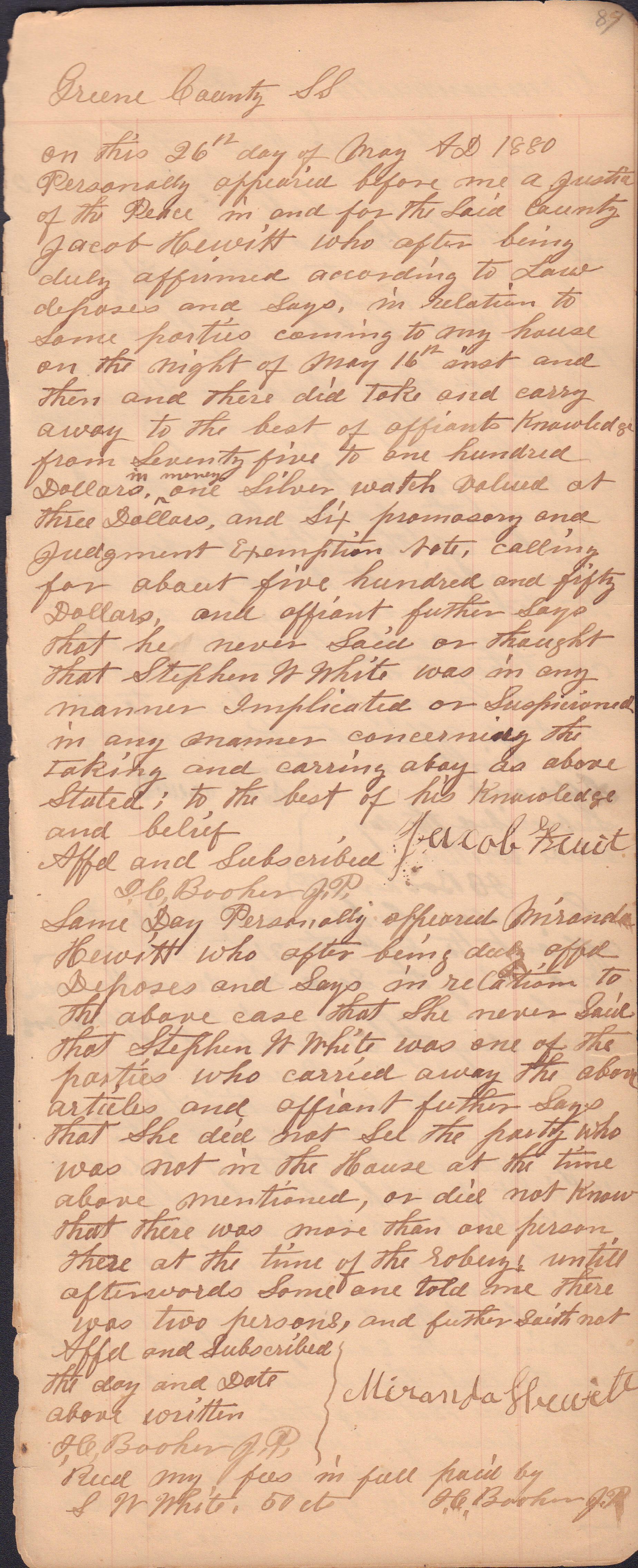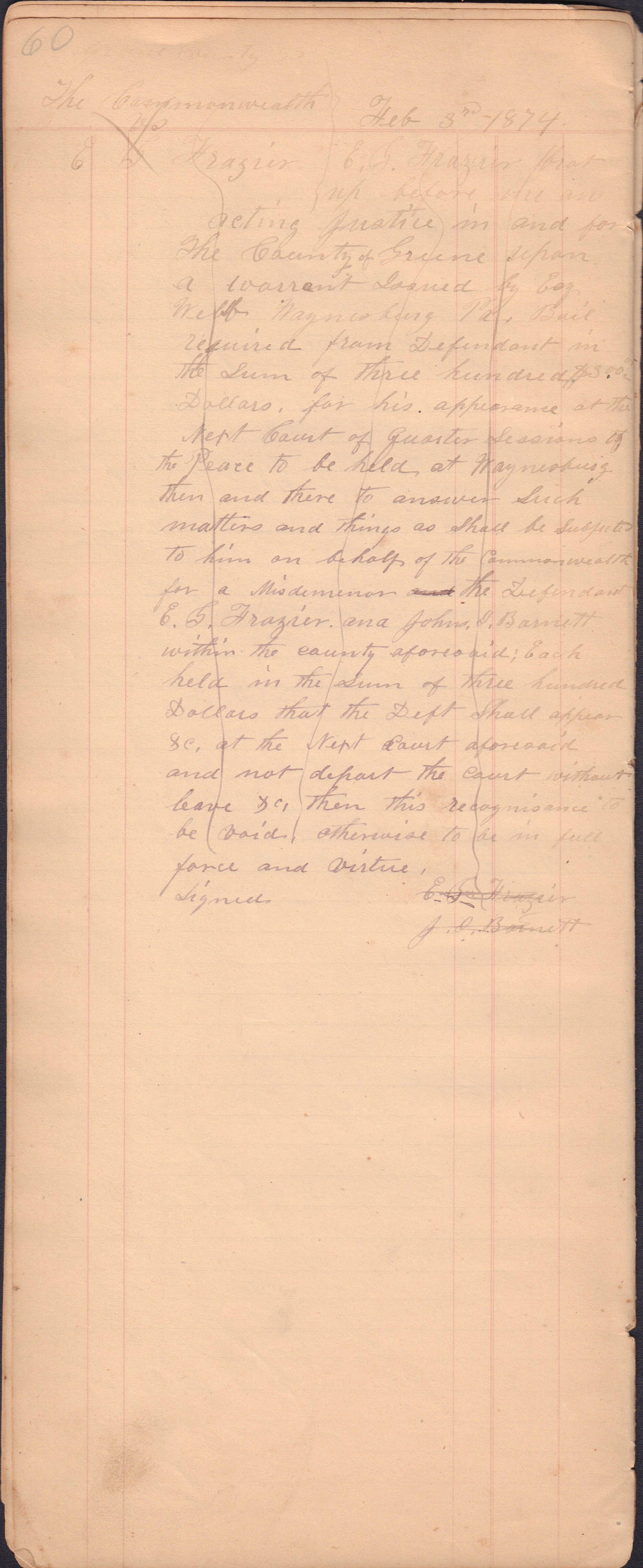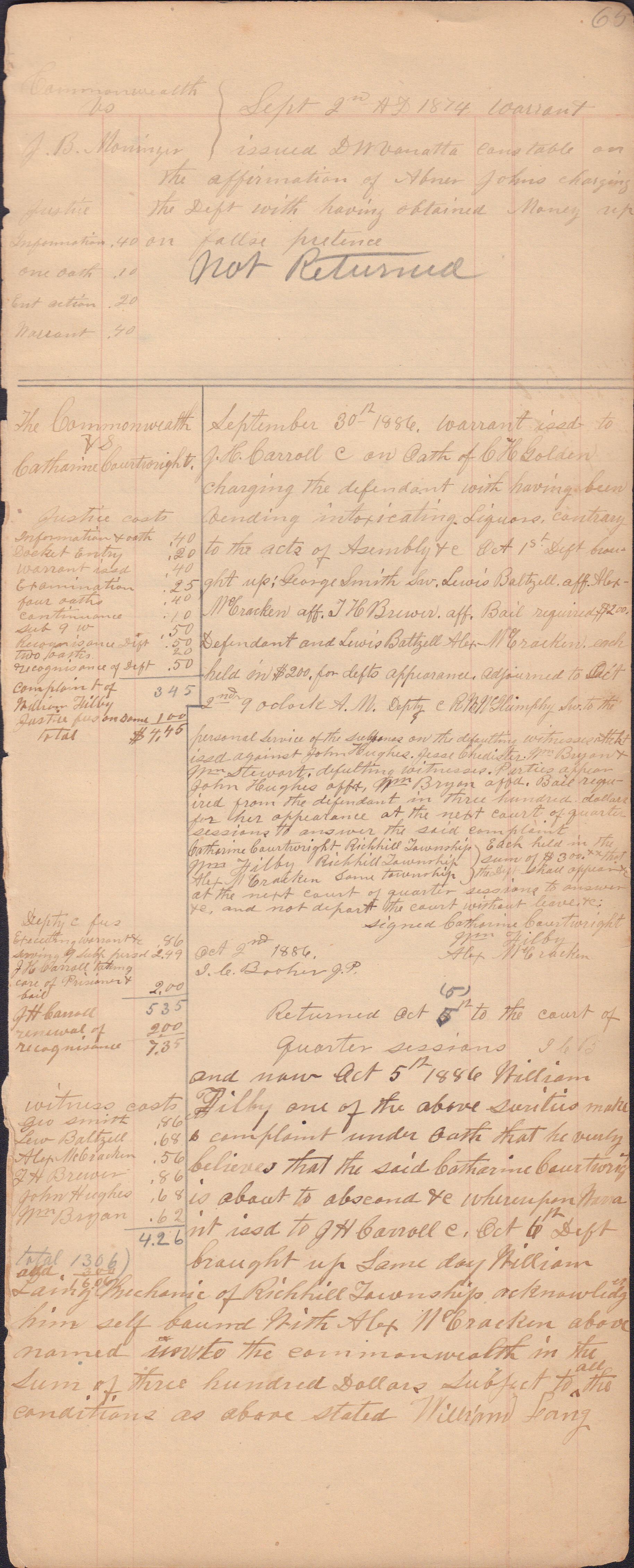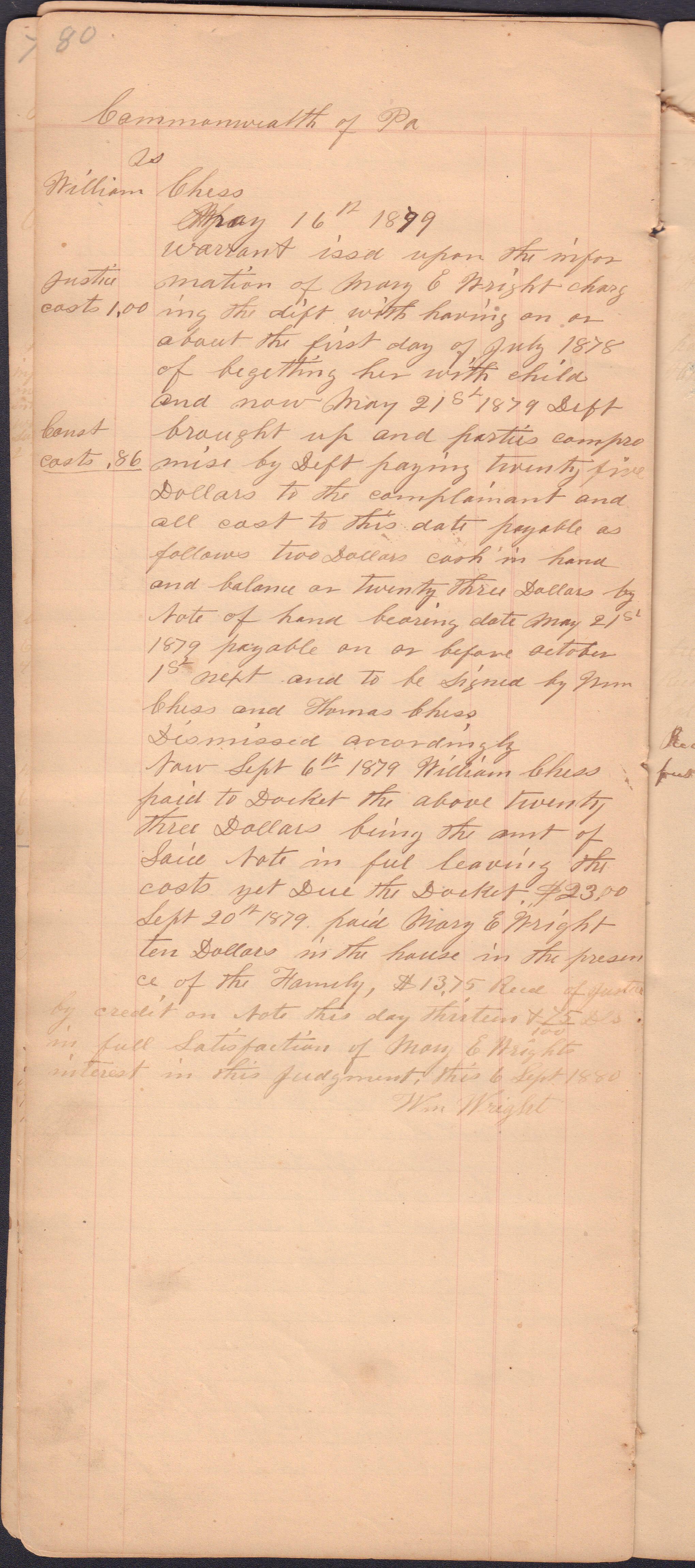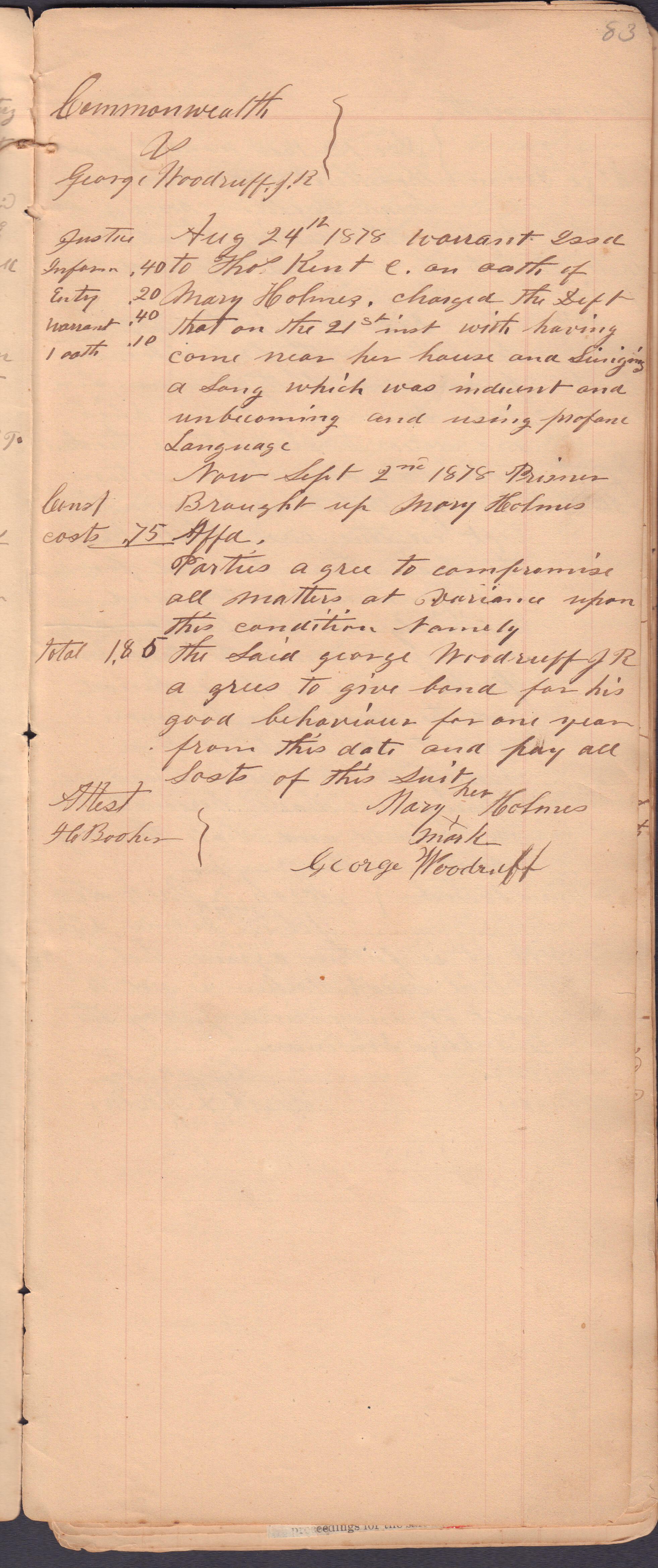 Source Citation: I. C. Booher and G. W. Smith, Justice of the Peace Docket, docket entries 1870s-1900s, Richhill Township, Greene County, Pennsylvania; held by Greene County Clerk of Court's Office, Courthouse, Waynesburg, Pennsylvania, 2016, item no. GCCH-AN003-0003-0000, Greene County Courthouse Collection, Greene Connections Archives Project (www.GreeneConnections.com).