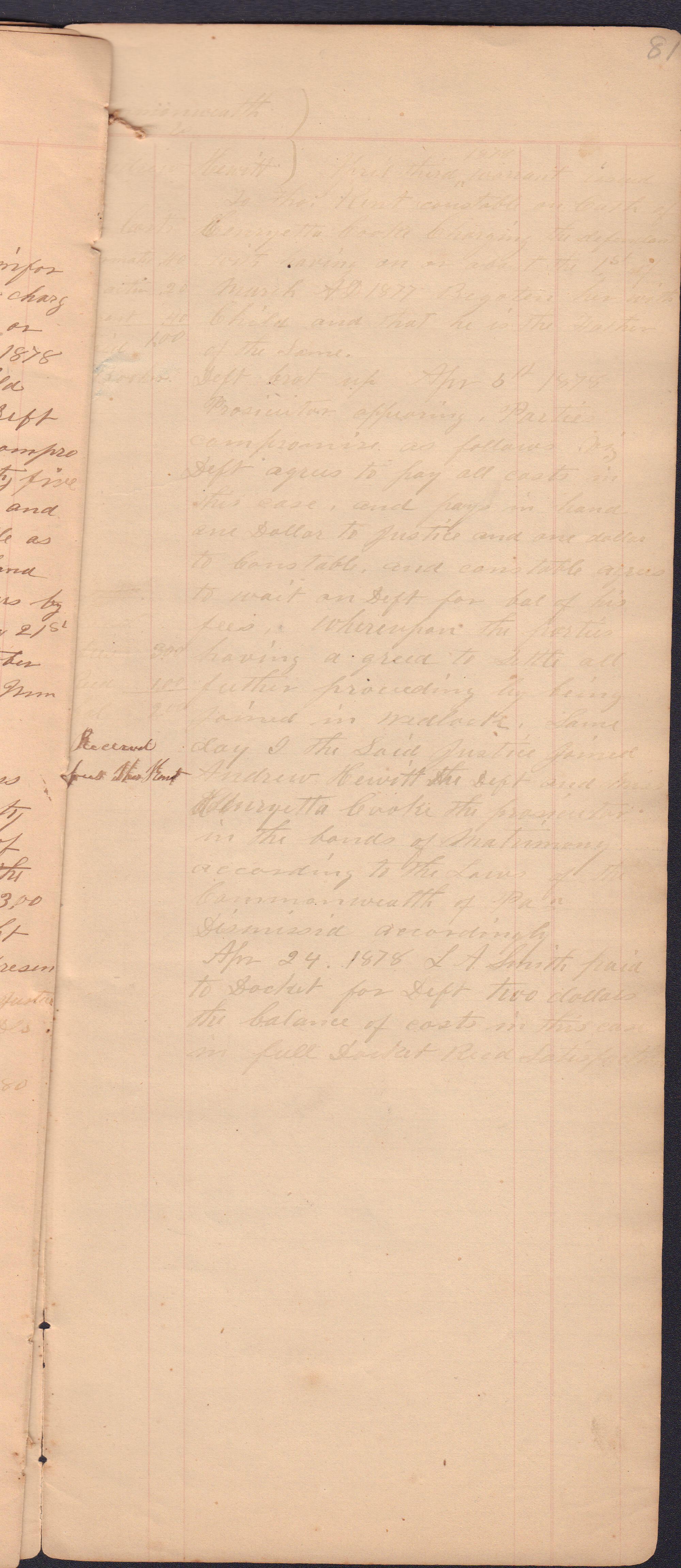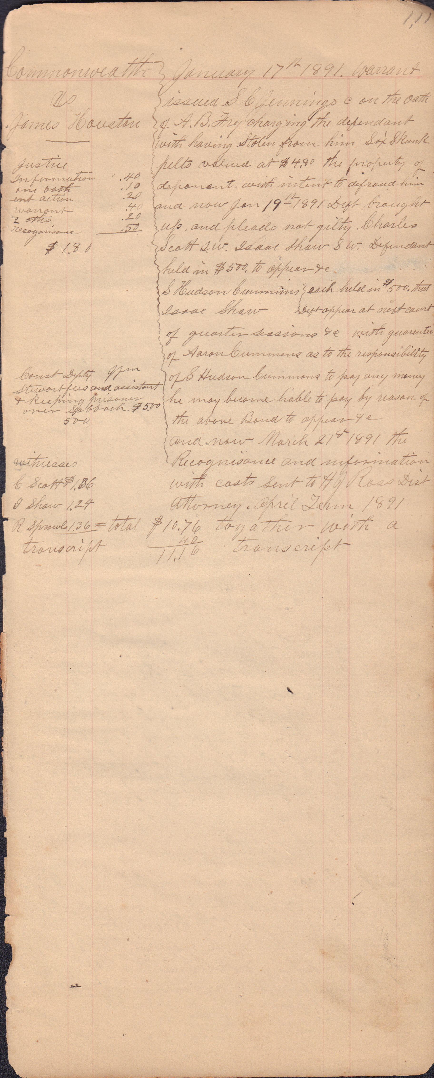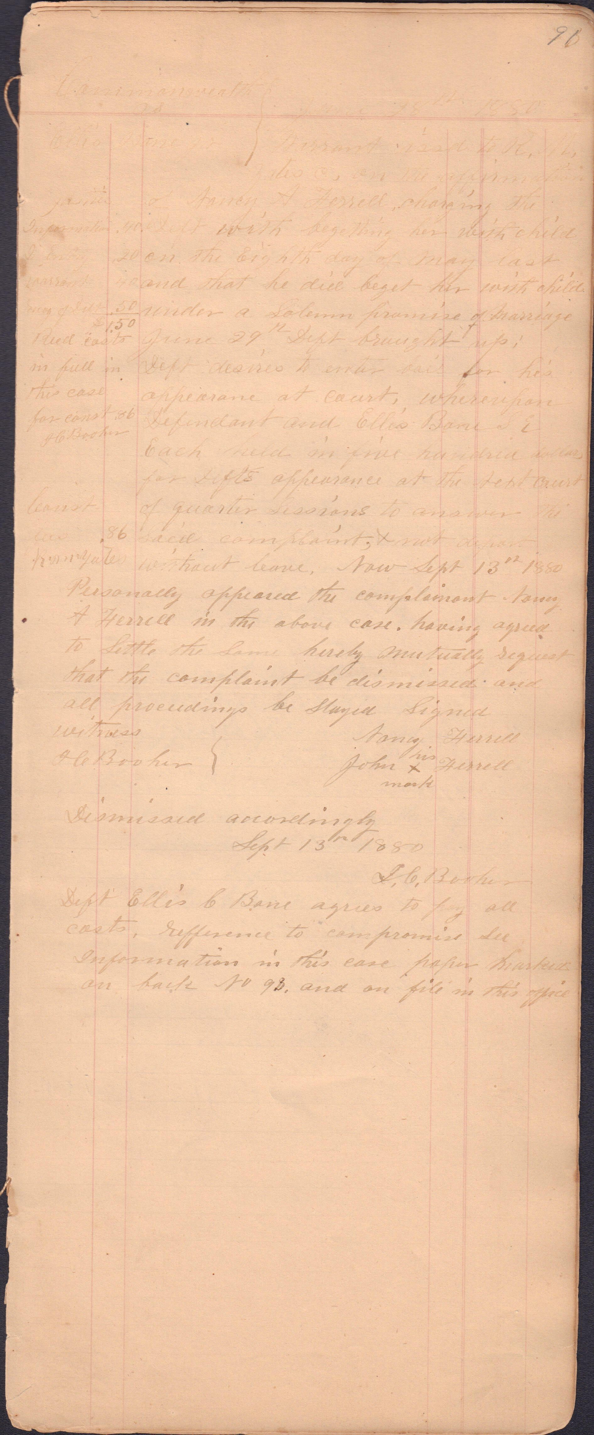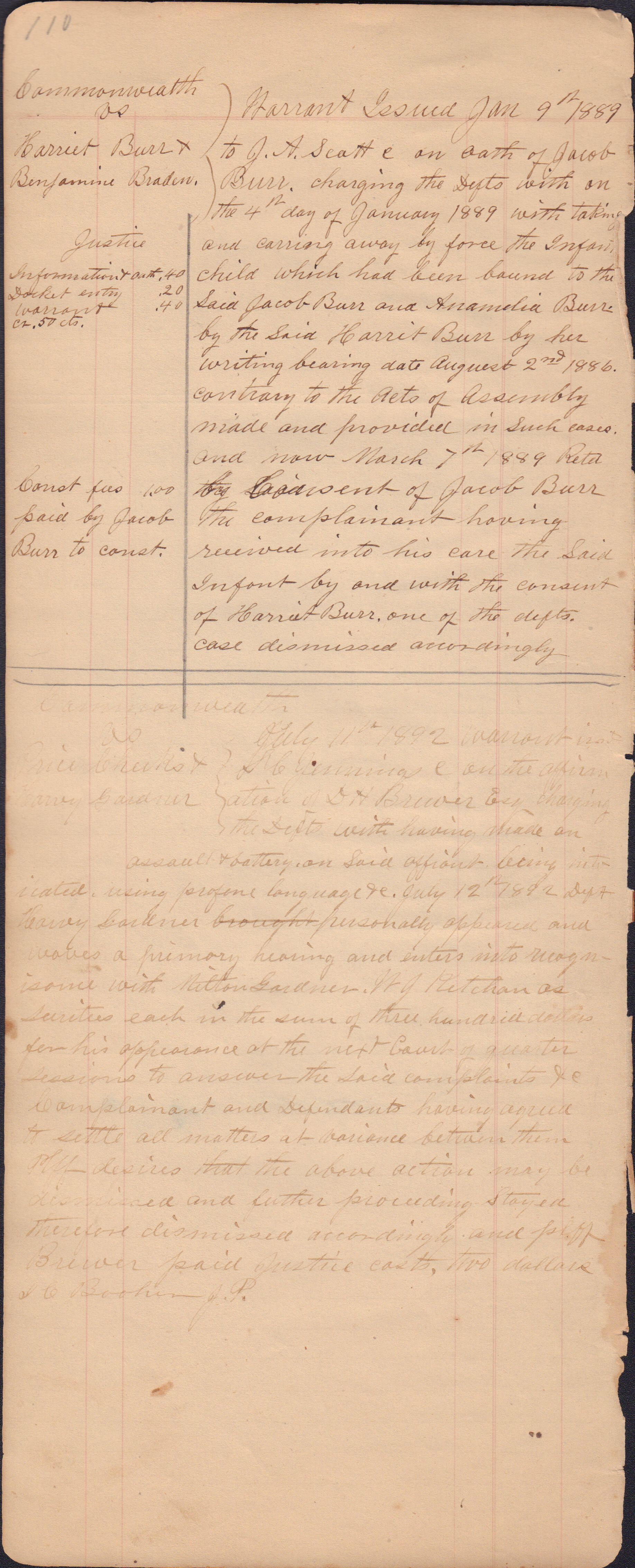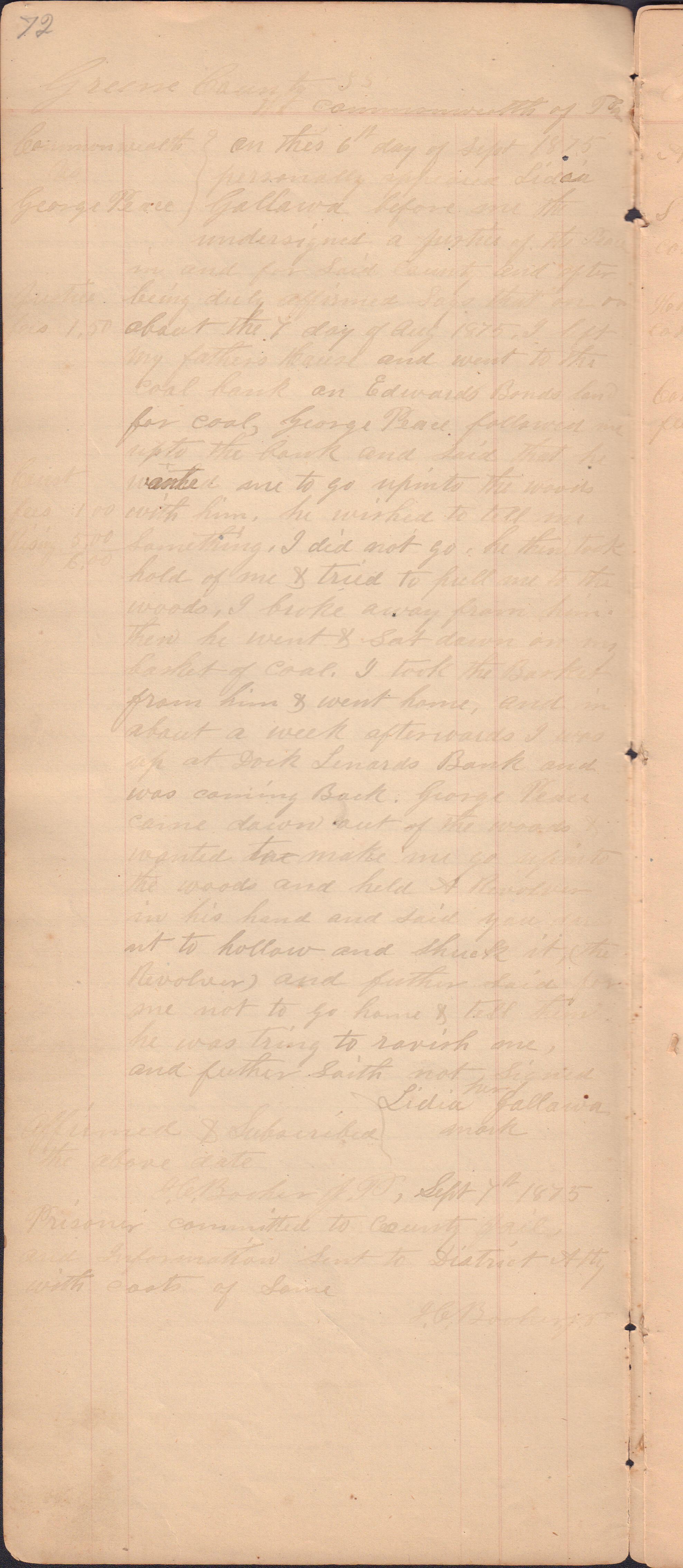Source Citation: I. C. Booher and G. W. Smith, Justice of the Peace Docket, docket entries 1870s-1900s, Richhill Township, Greene County, Pennsylvania; held by Greene County Clerk of Court's Office, Courthouse, Waynesburg, Pennsylvania, 2016, item no. GCCH-AN003-0003-0000, Greene County Courthouse Collection, Greene Connections Archives Project (www.GreeneConnections.com).