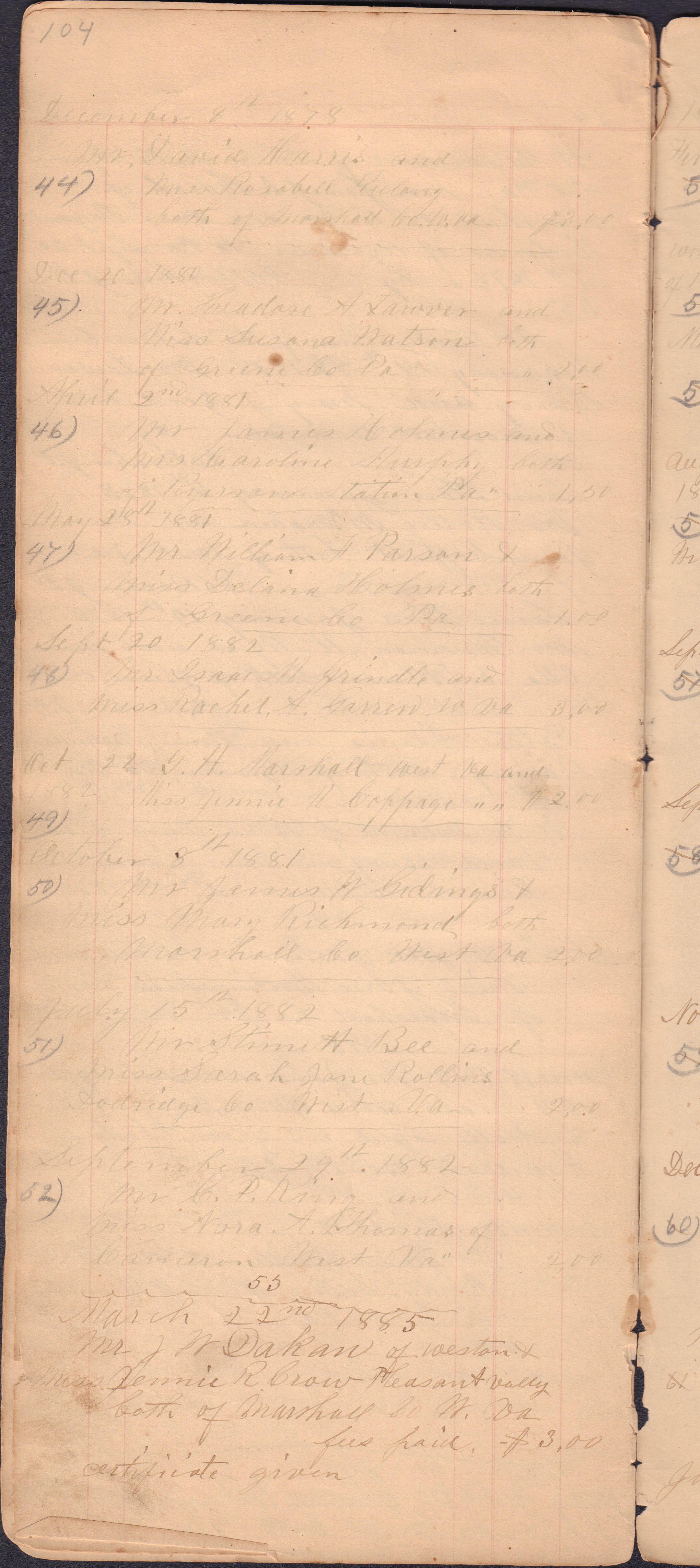 ** Page 53 skips next to page 56. Pages 54 and 55 are not missing, they are simply not included in the handwritten numbers.