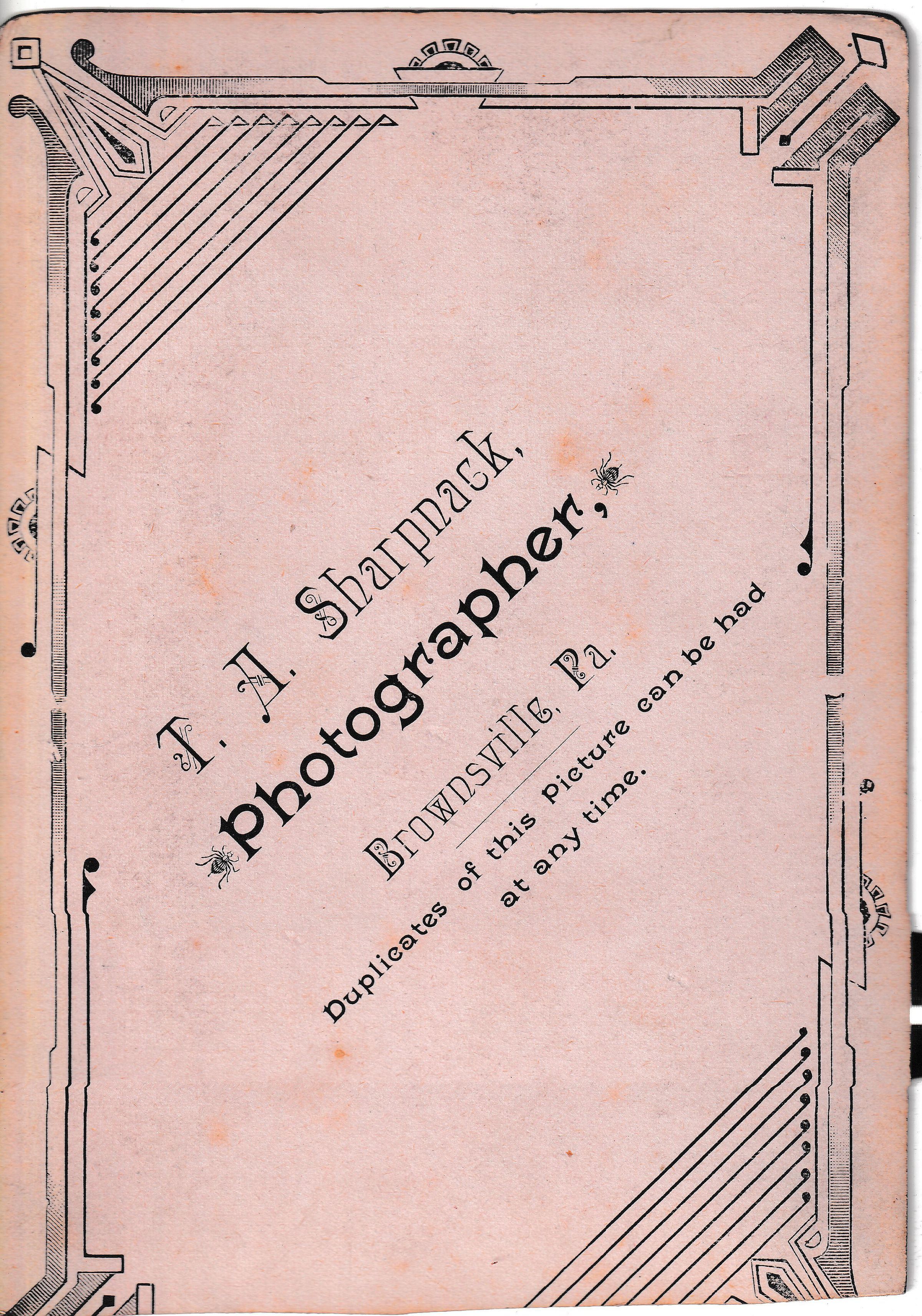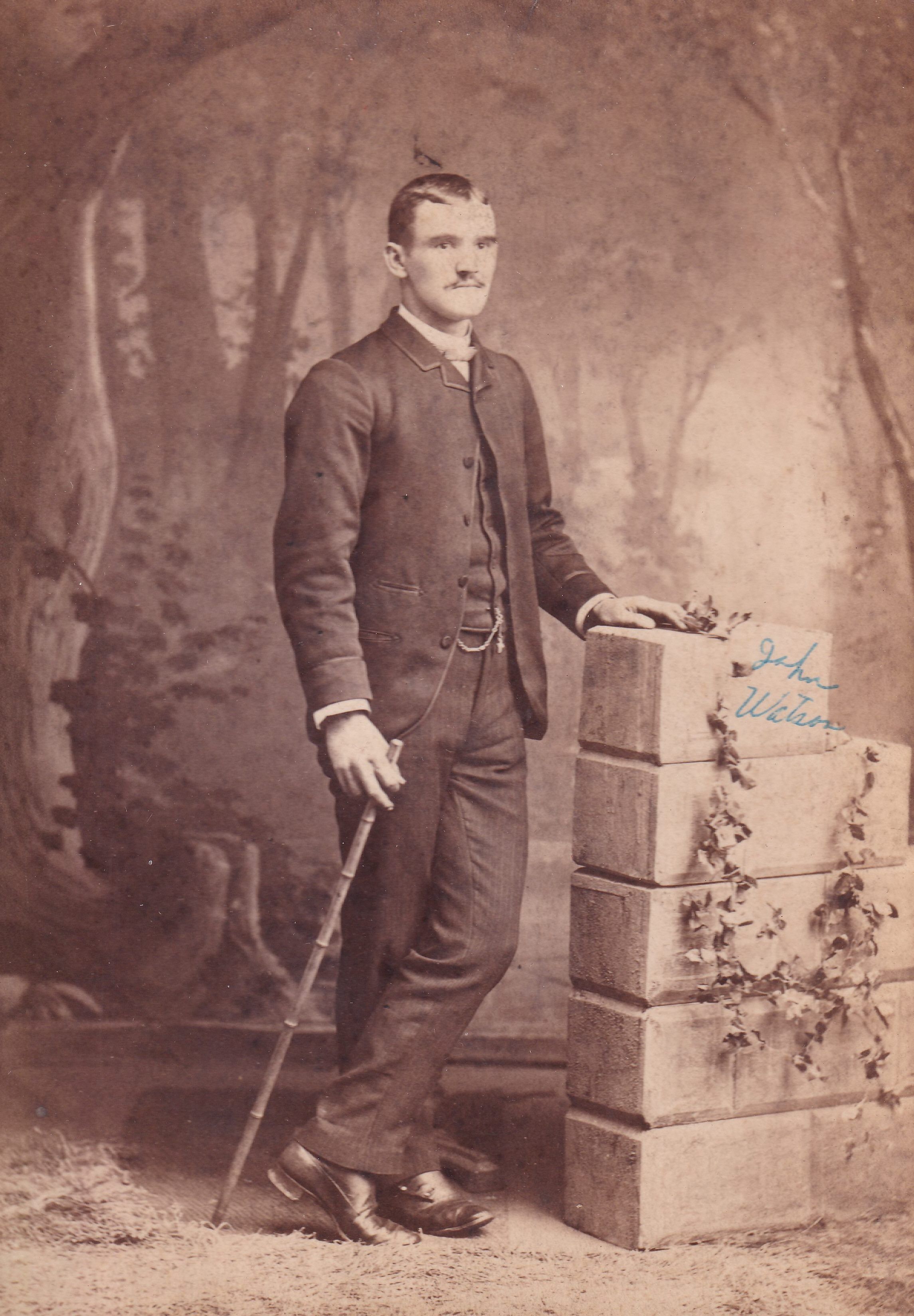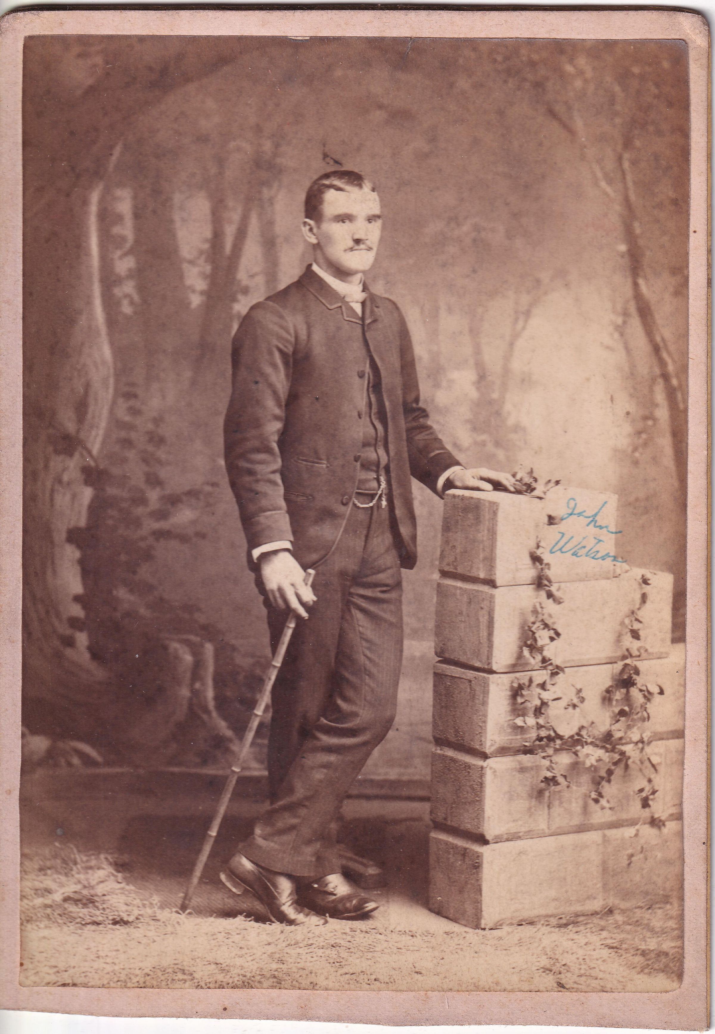 SOURCE CITATION: Kline-Moredock Album 01, Photo 28 - John O. Watson [1867-1948]; circa 1880-1890, image by T. A. Sharpnack, Artistic Photographs, Brownsville, Pa.; item no. MORE-AN004-0028, Ammons-Moredock Collection, Greene Connections Archives Project (www.GreeneConnections.com).