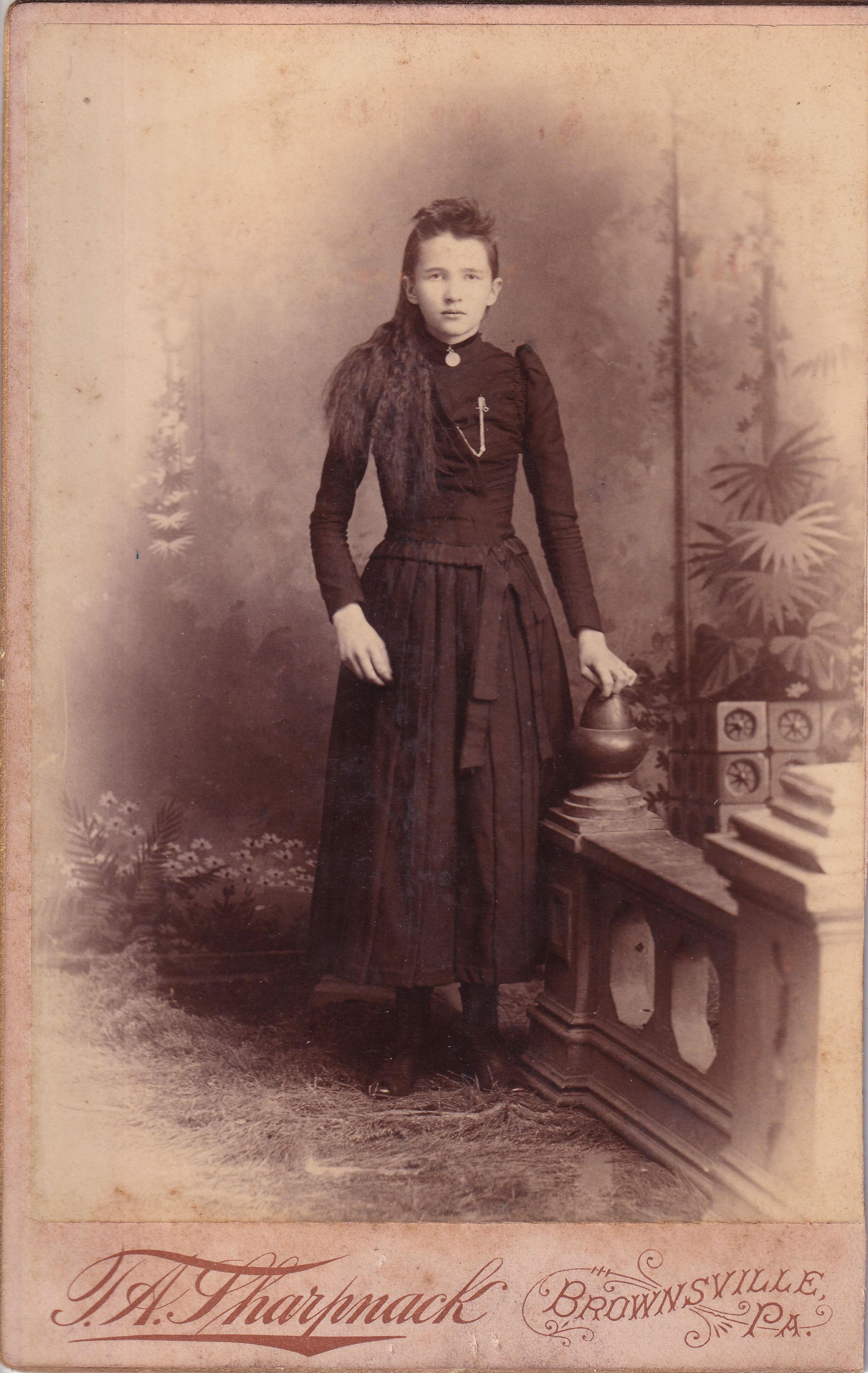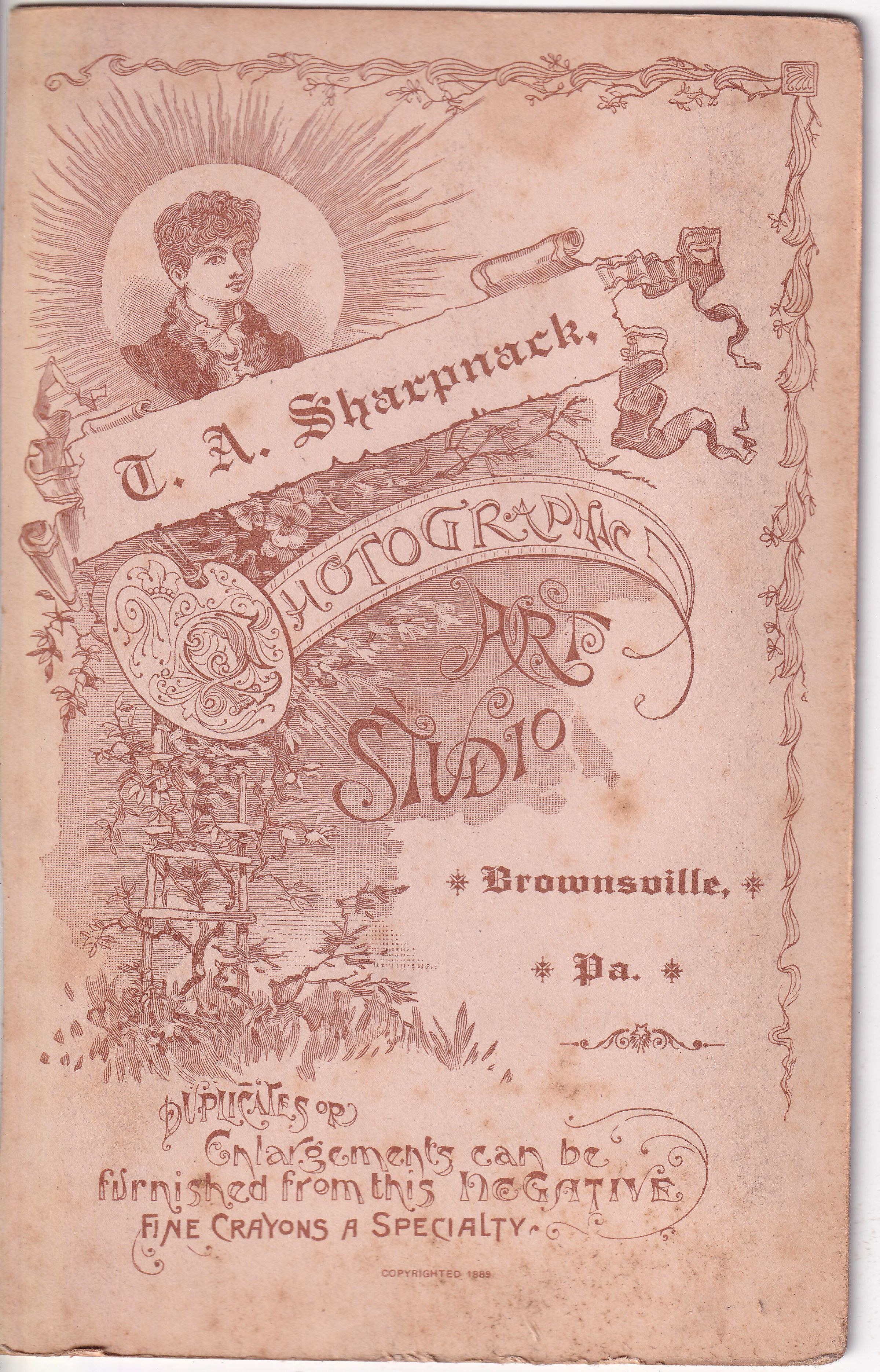 SOURCE CITATION: Kline-Moredock Album 01, Photo 31; circa 1890-1900, image by T. A. Sharpnack, Photographic Art Studio, Brownsville, Pa.; item no. MORE-AN004-0031, Ammons-Moredock Collection, Greene Connections Archives Project (www.GreeneConnections.com).