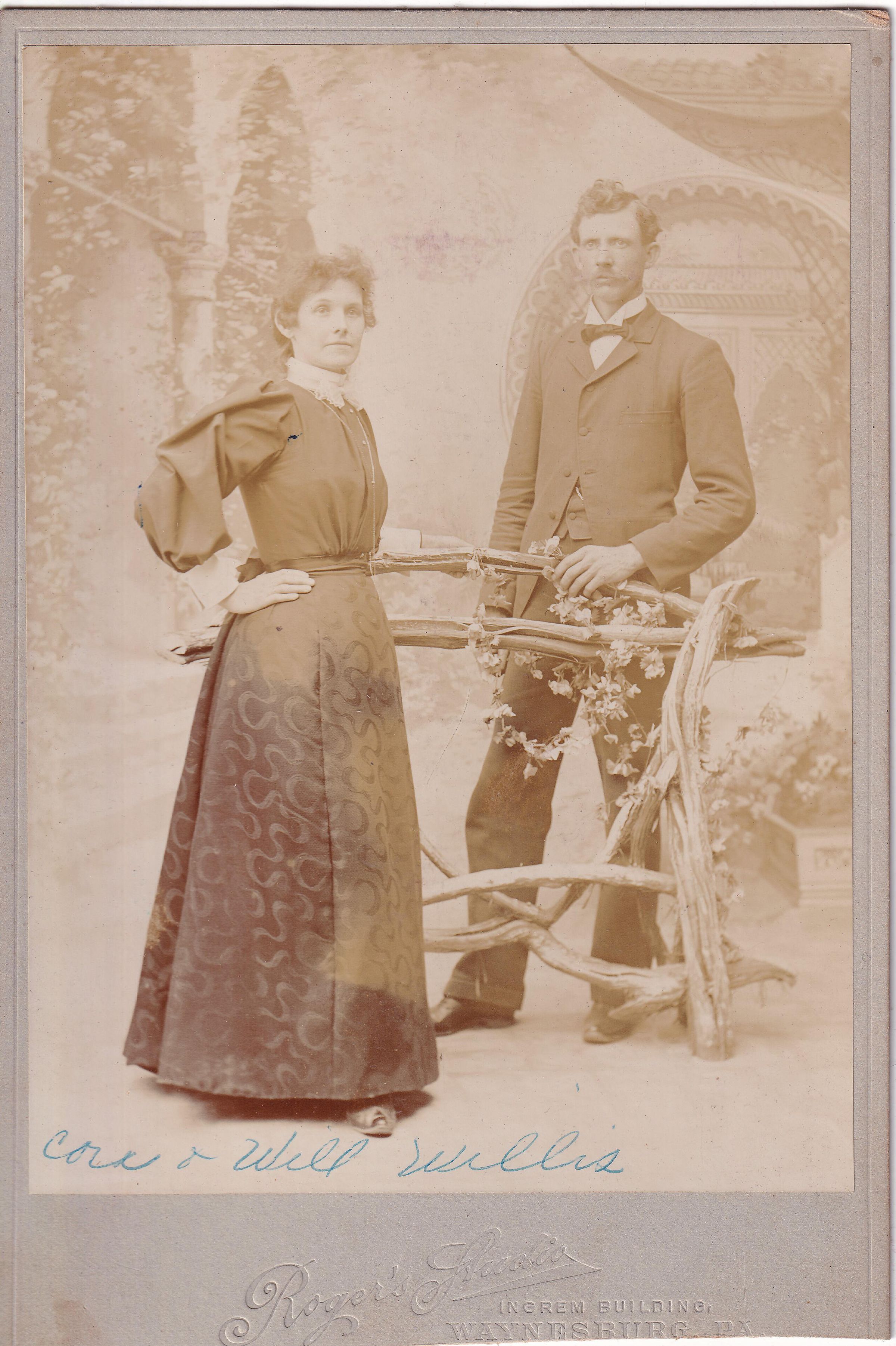 SOURCE CITATION: Kline-Moredock Album 01, Photo 36 - William Thomas Willis [1862-1934] and his wife, Cora (Caseber) (Denny) Willis [1867-1927]; circa 1900-1905; item no. MORE-AN004-0036, Ammons-Moredock Collection, Greene Connections Archives Project (www.GreeneConnections.com).