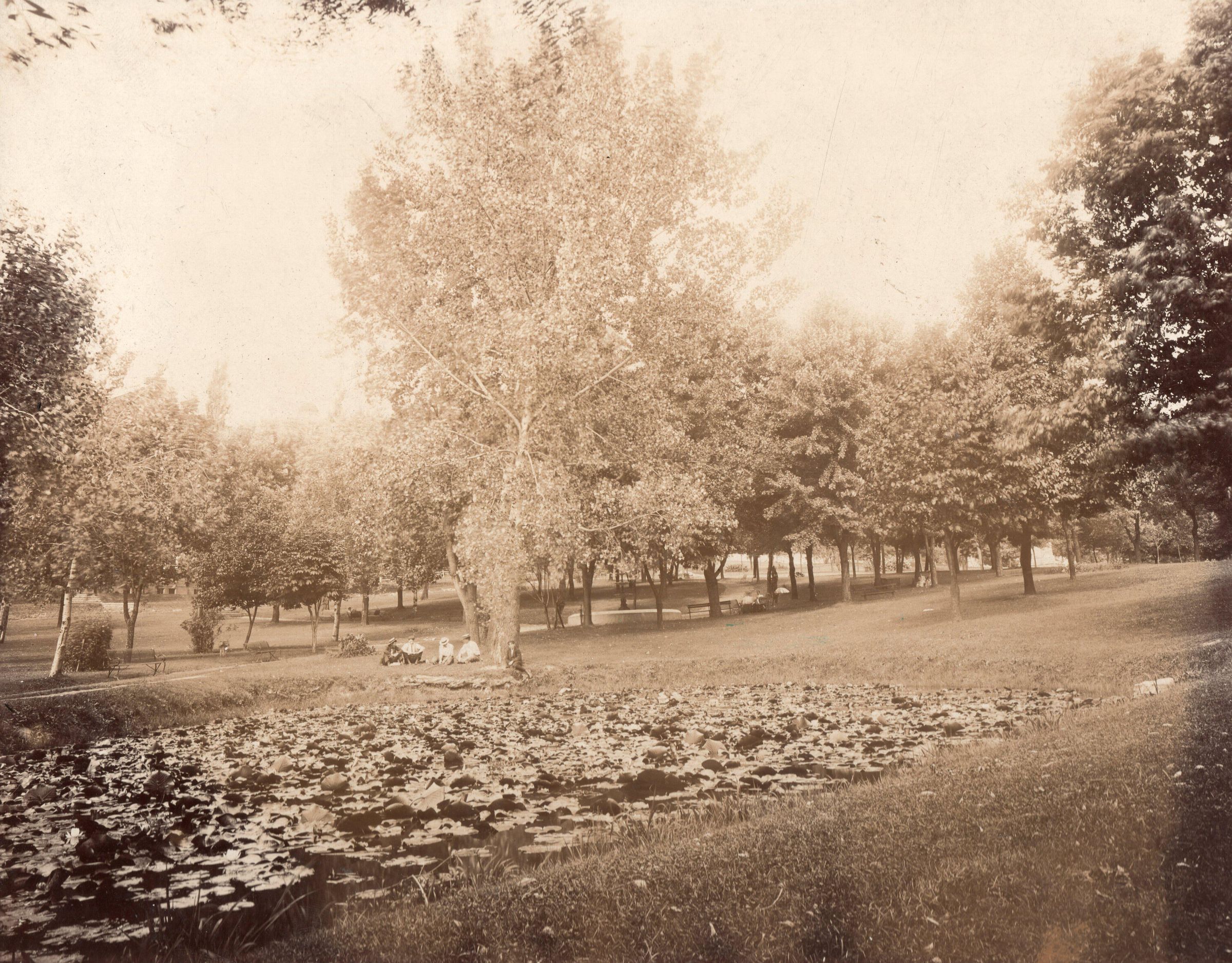 Source Citation: Lake Winnetta and the fountain in College Park, Waynesburg, Greene County, Pennsylvania; item no. CMBL-AN001-0001, Matt W. Cumberledge Collection; Greene Connections Archives Project (GreeneConnections.com).