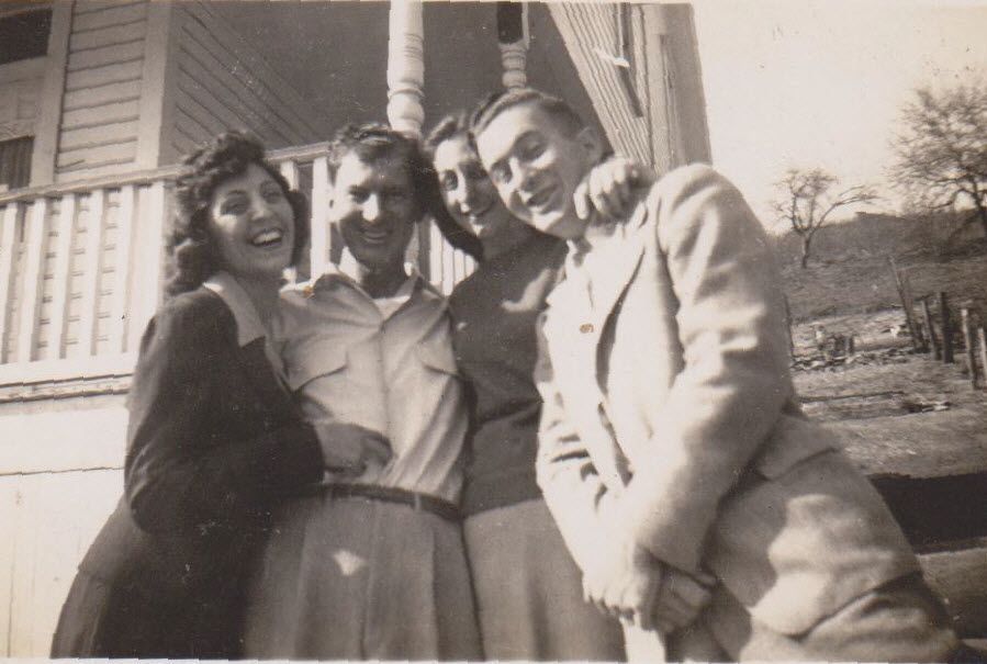 SOURCE CITATION: [Left-Right]: Frances (Leo) Mize [1914-1987] and her husband, Jesse H. Mize [1910-1993], with Nellie Leo [1919-2013] and Bill Mize (brother of Jesse H. Mize); circa 1940s; item no. LEOS-AN001-0007, Nellie Leo Collection, Greene Connections Archives Project (GreeneConnections.com).