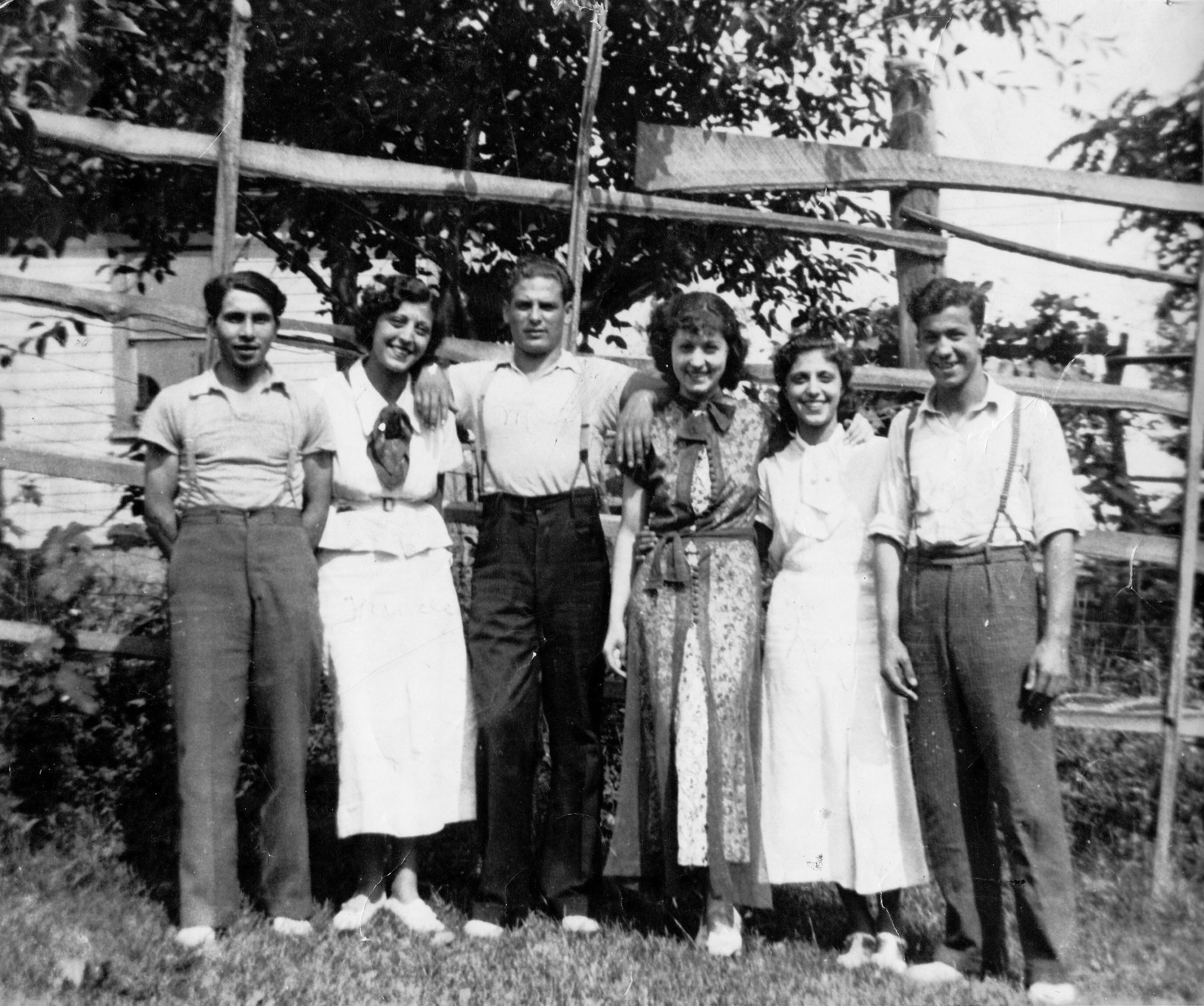 SOURCE CITATION: [Left-Right]: Tony Rizzo, Frances (Leo) Mize [1914-1987], Anthony Scandale, Gaete Corsi, Lucy Cecilia (Leo) Komats [1915-1987], Pete Leo [1918-1999]; dated July 1936, Waynesburg, Pennsylvania; item no. LEOS-AN001-0005, Nellie Leo Collection, Greene Connections Archives Project (GreeneConnections.com).