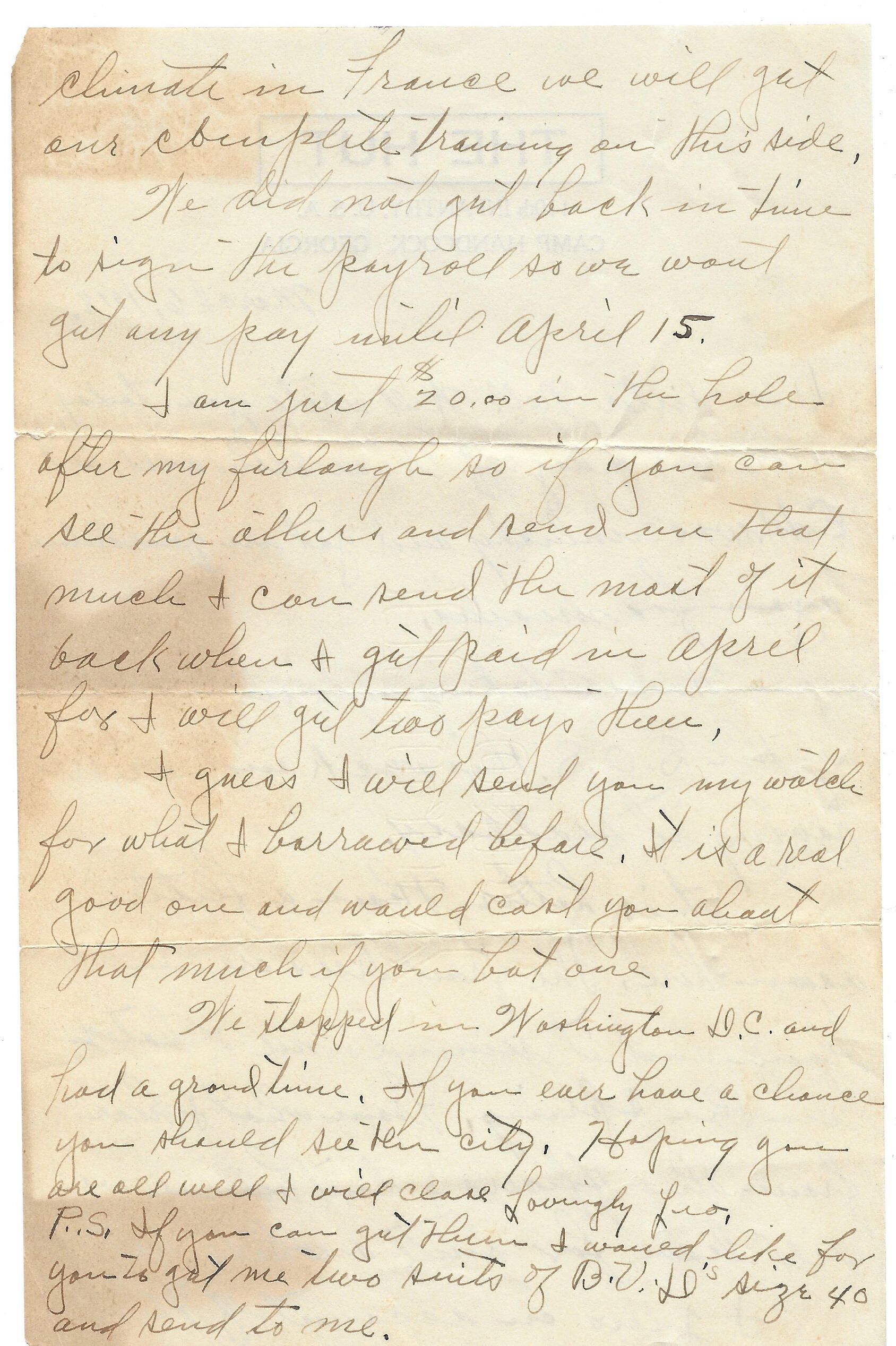 P.S. If you can get them I would like for you to get me two suits of B.V.D's size 40 and send to me."Collection