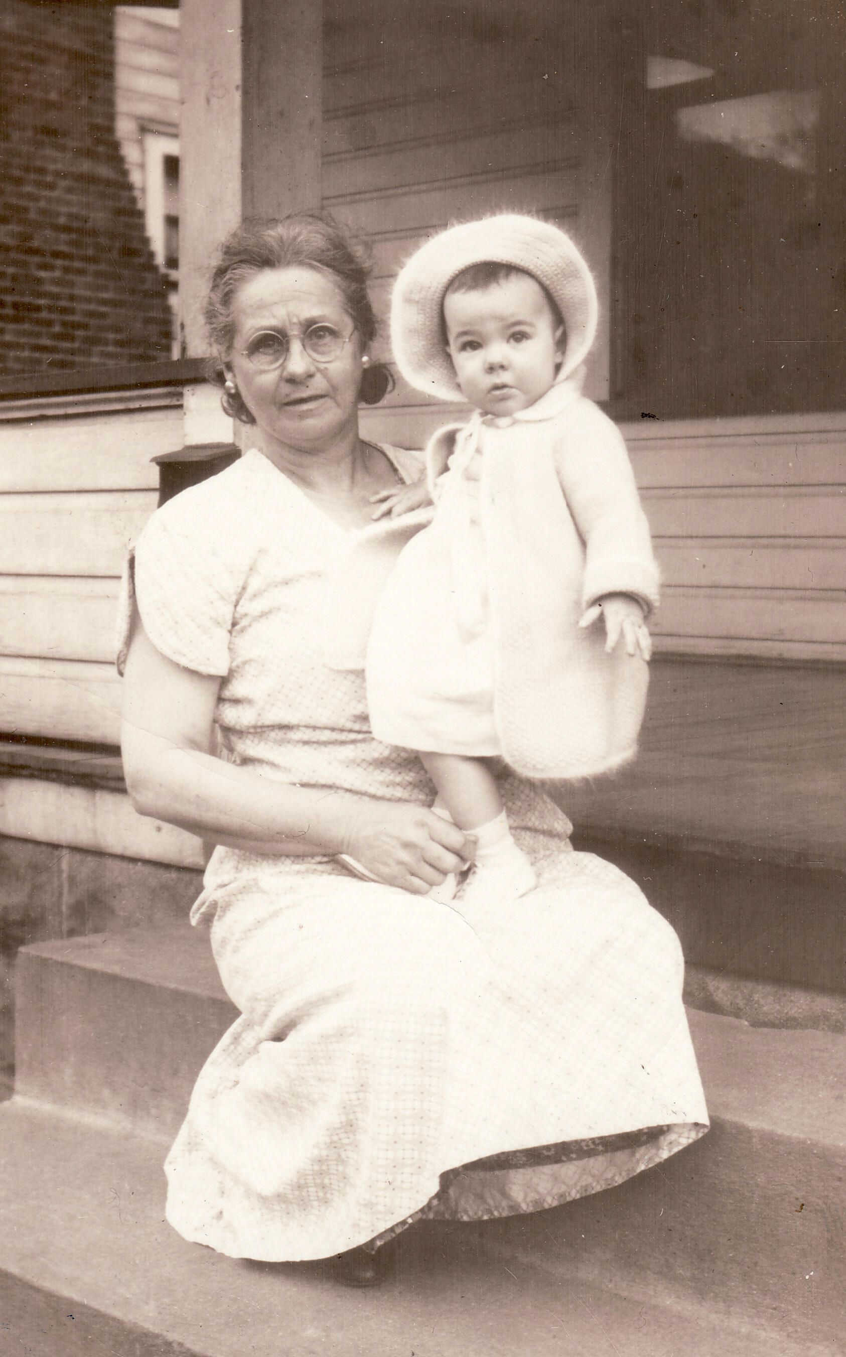 SOURCE CITATION: Lillian Frances (Supler) Swart [1886-1969] with unknown child; circa 1930-1950; item no. SUPL-AN003-0024, Swart Series, Wayne Carl Swart Collection, Greene Connections Archives Project (www.GreeneConnections.com).