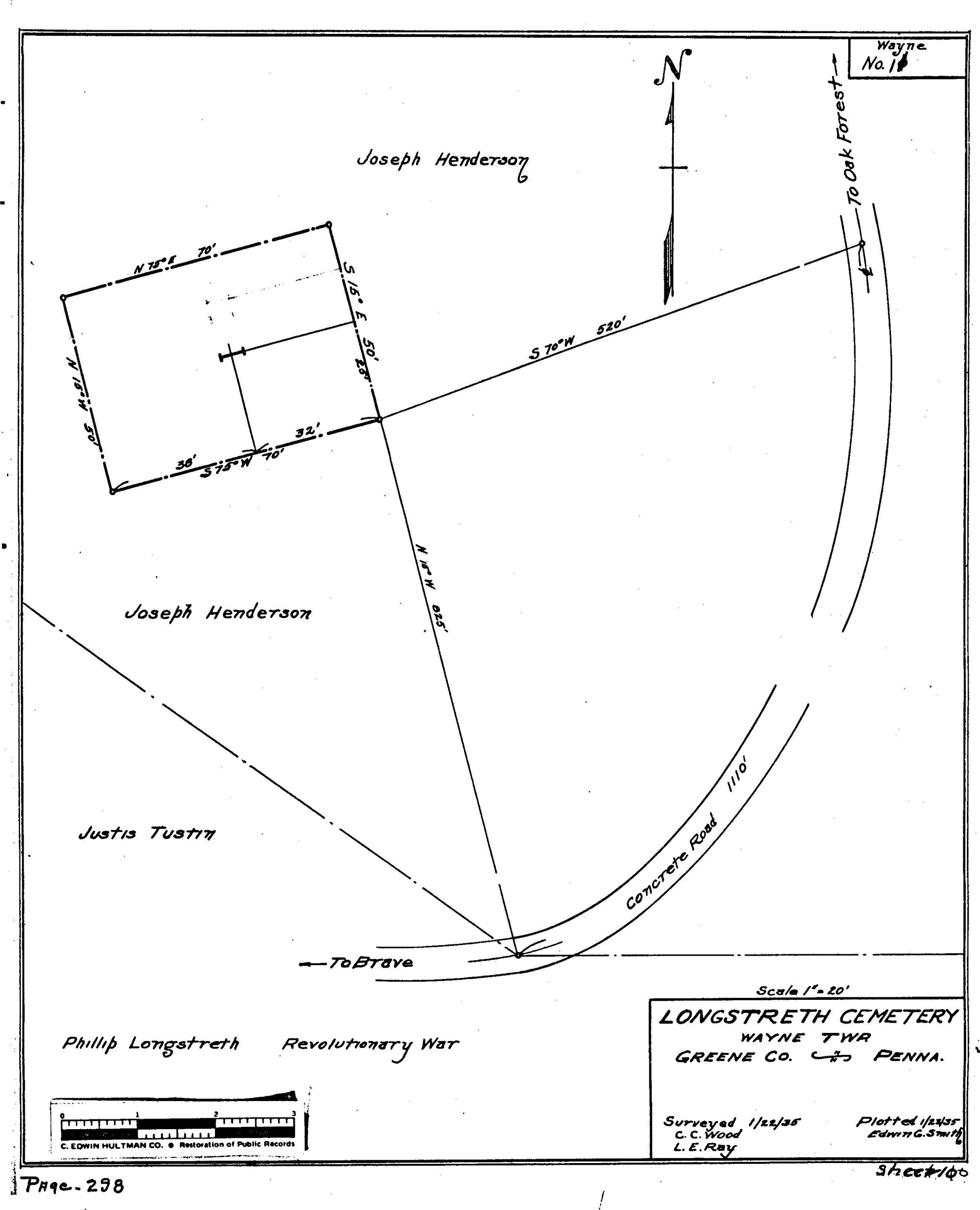 SOURCE CITATION: WPA Cemetery Plat - Pennsylvania - Greene County - Wayne Township - Longstreth Cemetery (1935); item no. 2016.3.289, Cemetery Plat (WPA) Collection, surveyed by Works Projects Administration, copy on file at the Clerk of Courts Office, Greene County Courthouse; Greene Connections Archives Project (GreeneConnections.com).
