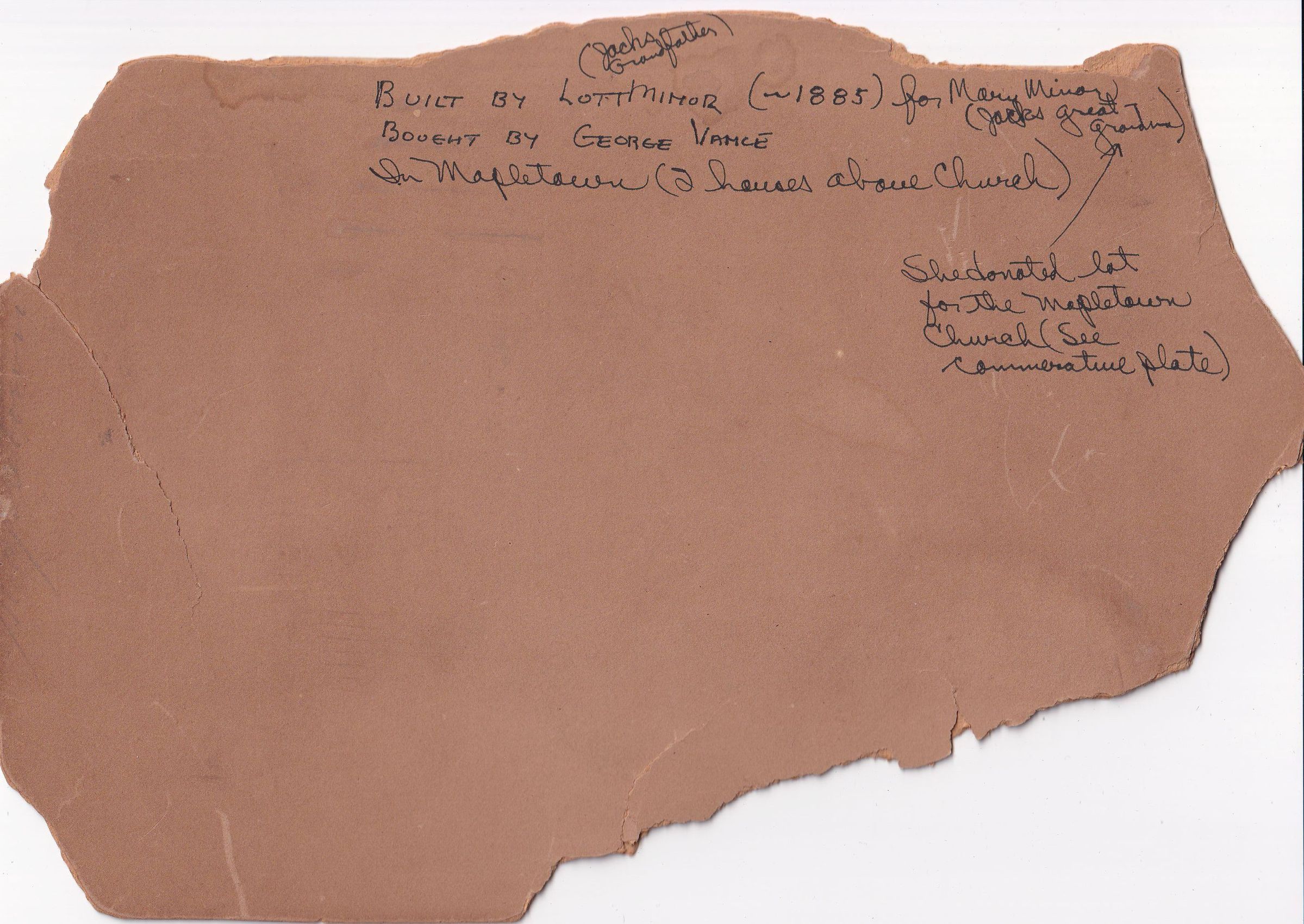 SOURCE CITATION: Lot Lantz Minor home in Mapletown, Greene County, Pennsylvania; circa 1900; item no. MILB-AN001-0006-0040, Vance Series, Mary (Vance) McCann Collection, shared by her grandson, William Marshall Miller; Greene Connections Archives Project (www.GreeneConnections.com).