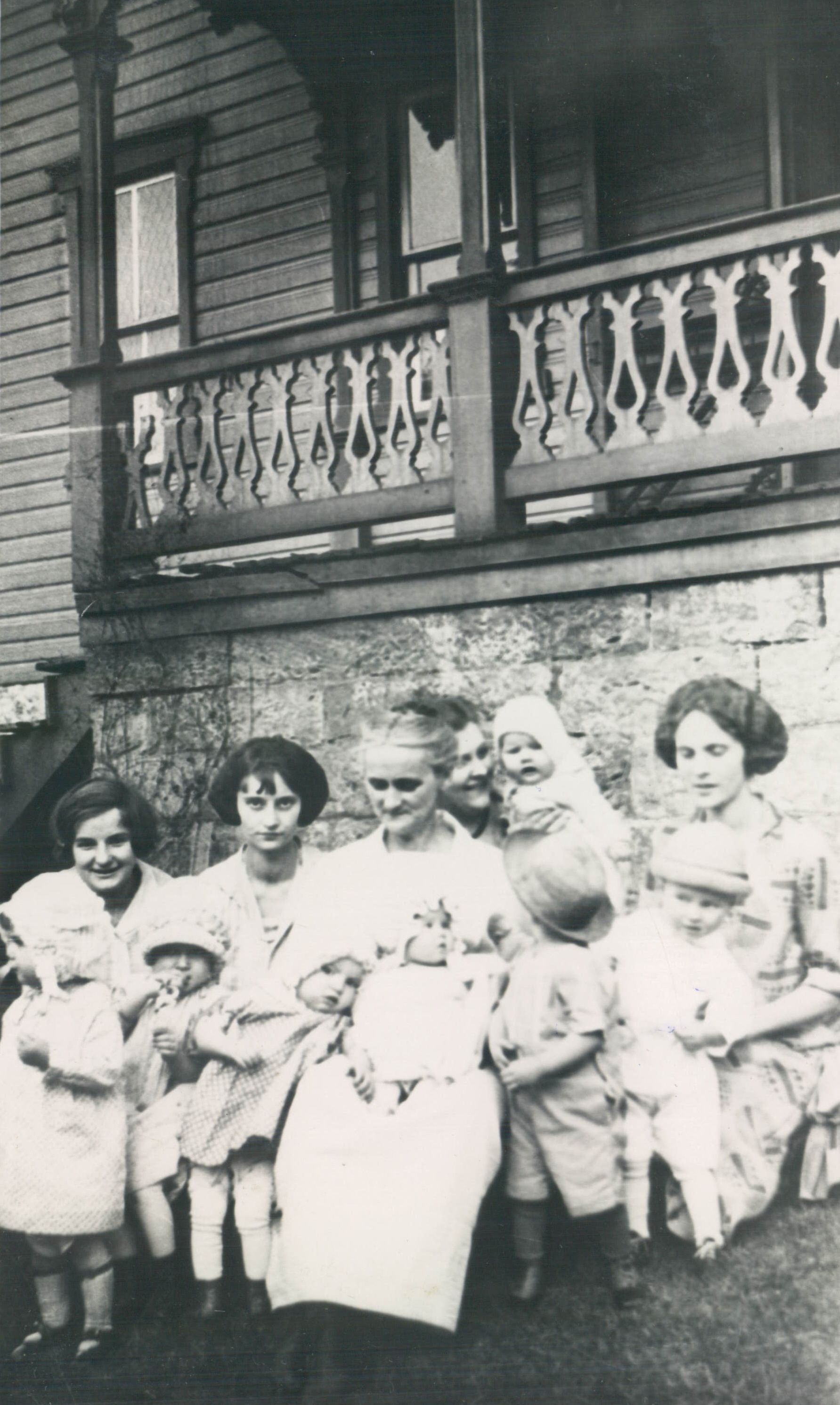 SOURCE CITATION: Louella (Cropp) Moore [1876-1930] seated in the center, surrounded by her family; circa 1920-1930; item no. WHET_AN002_0001_0003, Robert Dewayne and Margery Ellen (Moore) Whetzel Collection, Greene Connections Archives Project (GreeneConnections.com).