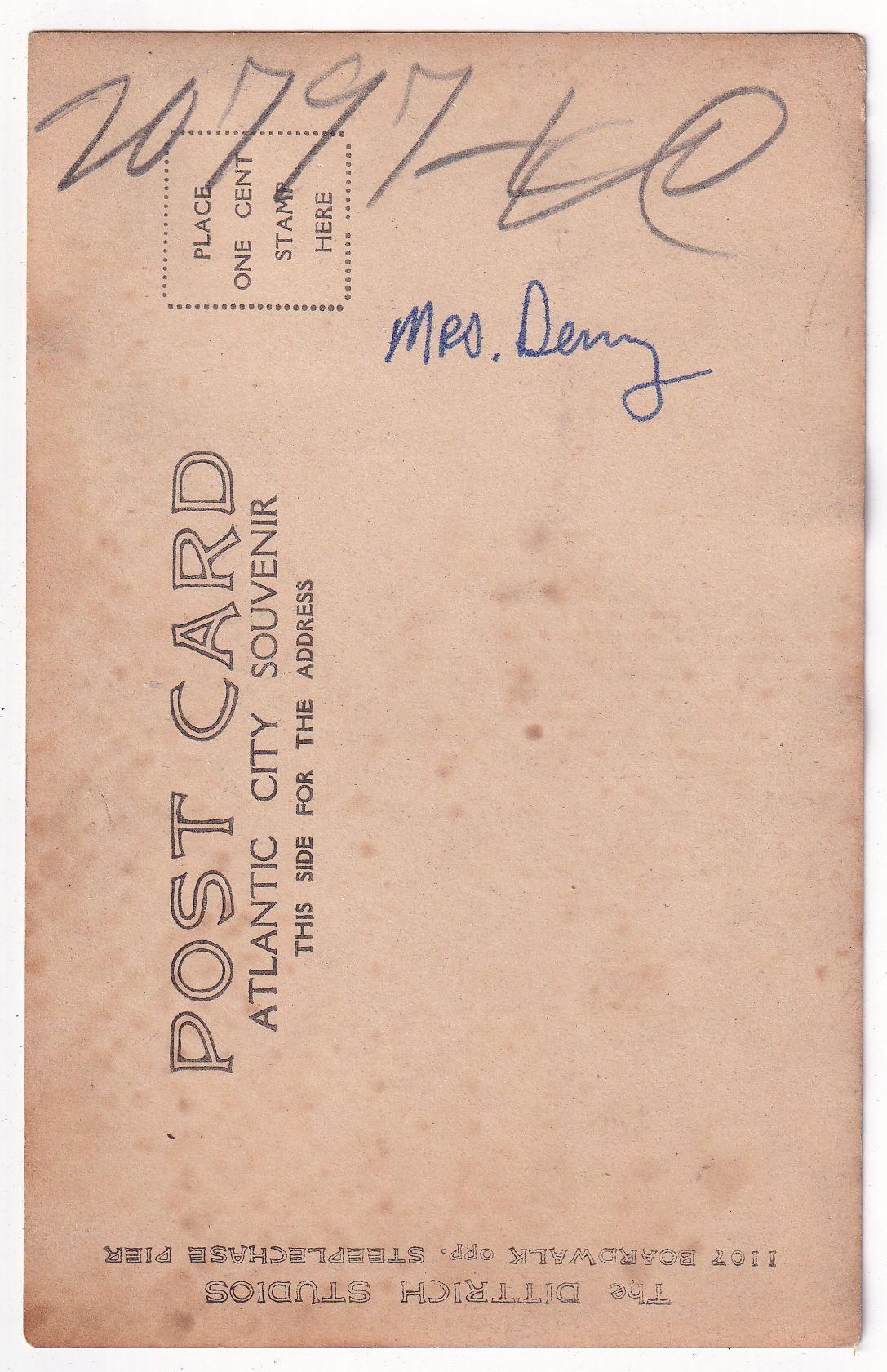 SOURCE CITATION: Louise (Inghram) Denny [1867-1956]; circa 1910-1920, image by Dittrich Studios, 1107 Boardwalk opp. Steeplechase Pier, Atlantic City; item no. DENN-AN002-0013, Josephine Denny Collection, shared by Farley Toothman, Greene Connections Archives Project (GreeneConnections.com).