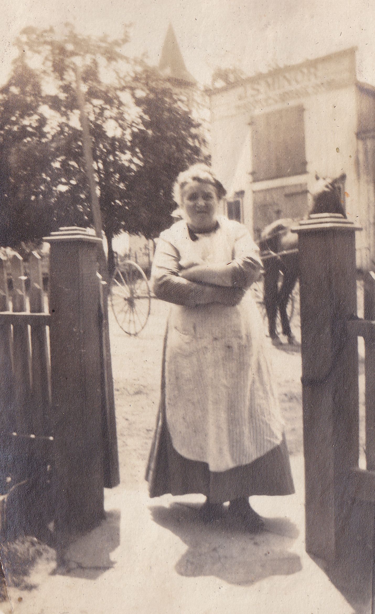 SOURCE CITATION: Jessie Dell (McFarland) Vance [1868-1935] standing in the yard of the Vance home in Mapletown, Monongahela Township, Greene County, Pennsylvania; circa 1900-1910; item no. MILB-AN001-0006-0042, Vance Series, Mary (Vance) McCann Collection, shared by her grandson, William Marshall Miller; Greene Connections Archives Project (www.GreeneConnections.com).