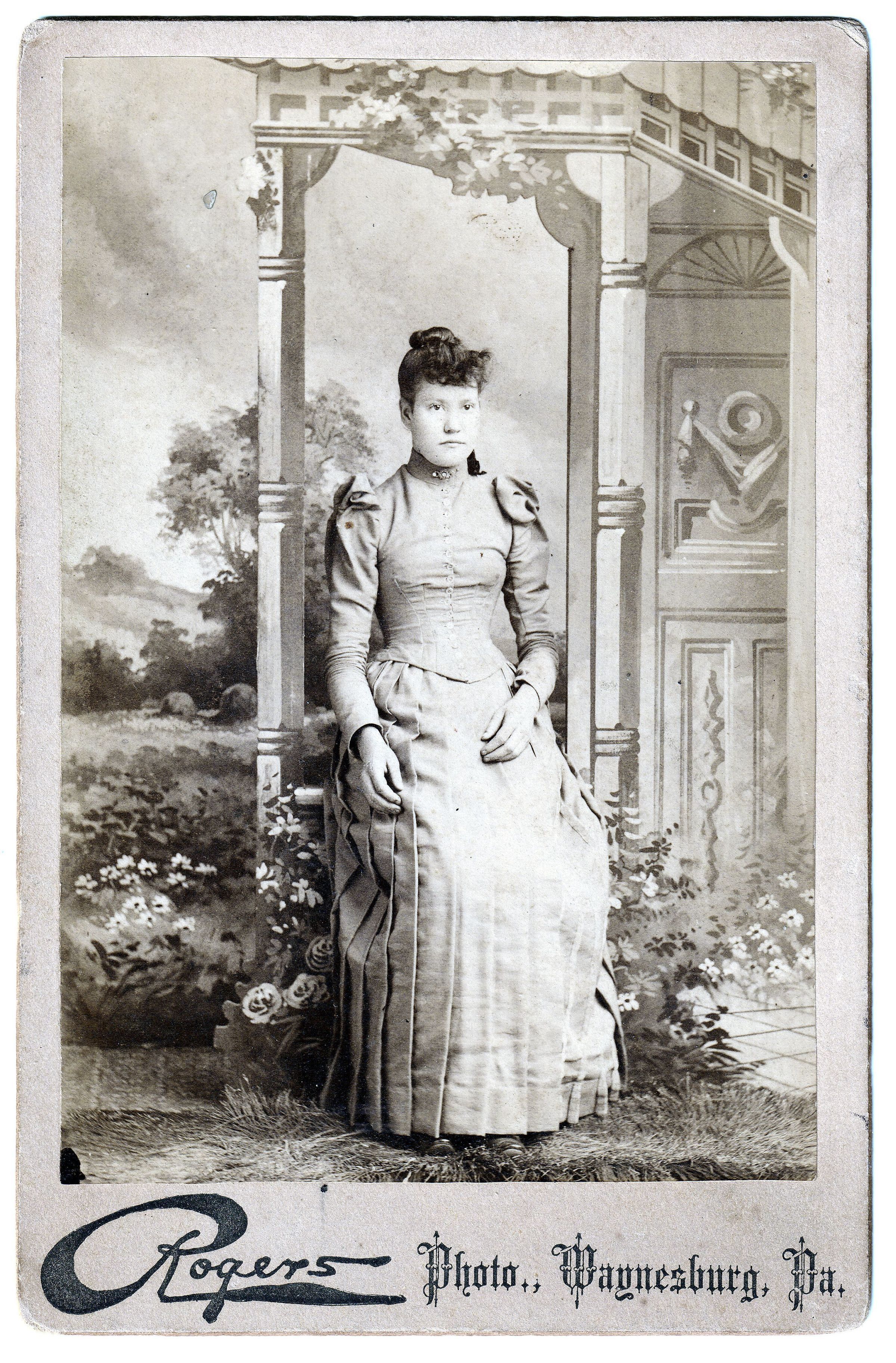 SOURCE CITATION: Believed to be Margaret (Bristor) Shape [1874-1895]; circa 1890, image by Rogers, Photo, Waynesburg, Pa.; item no. CAND-AN007-0040, Candice Lynn Buchanan Collection, Greene Connections Archives Project (GreeneConnections.com).