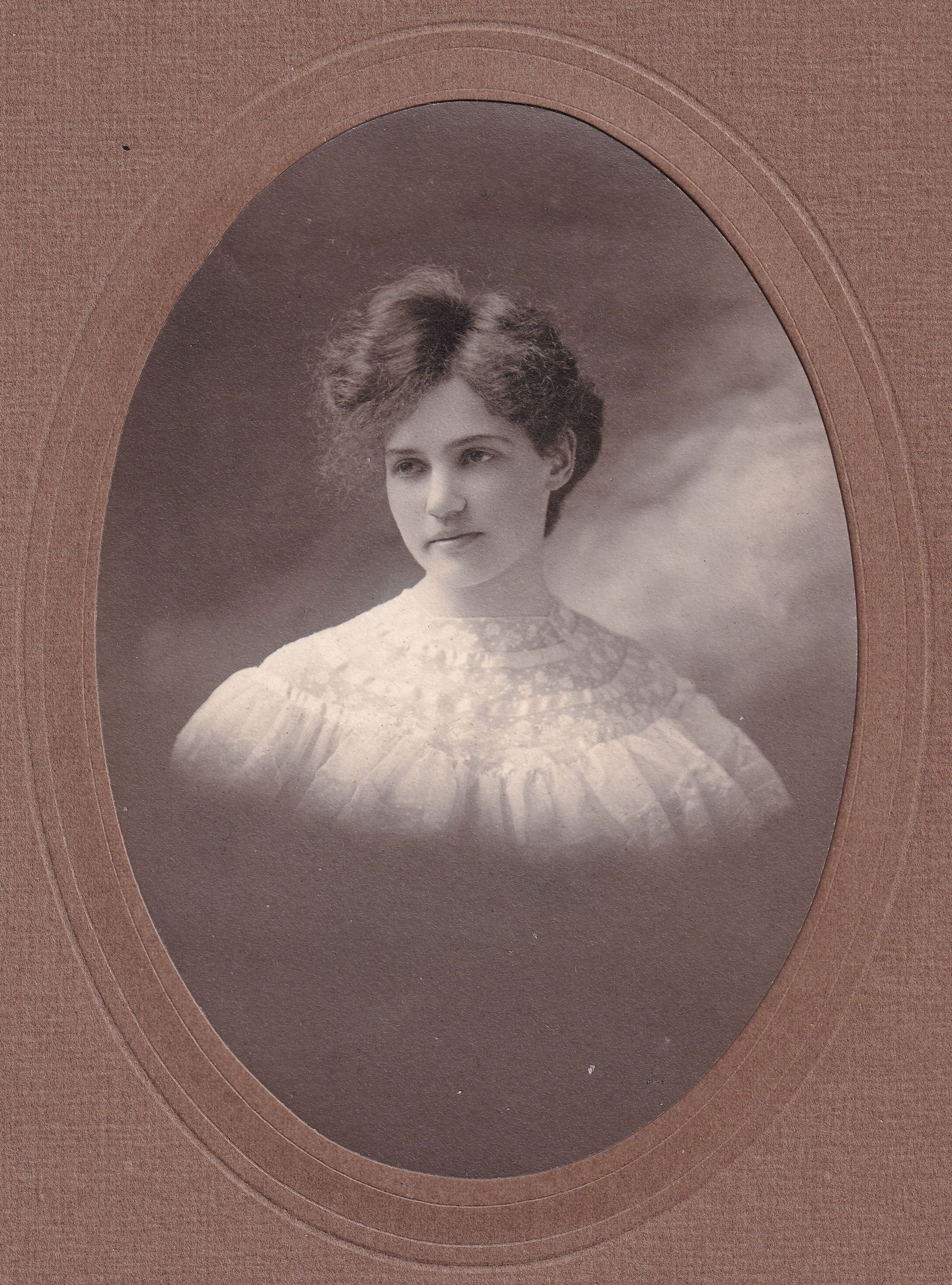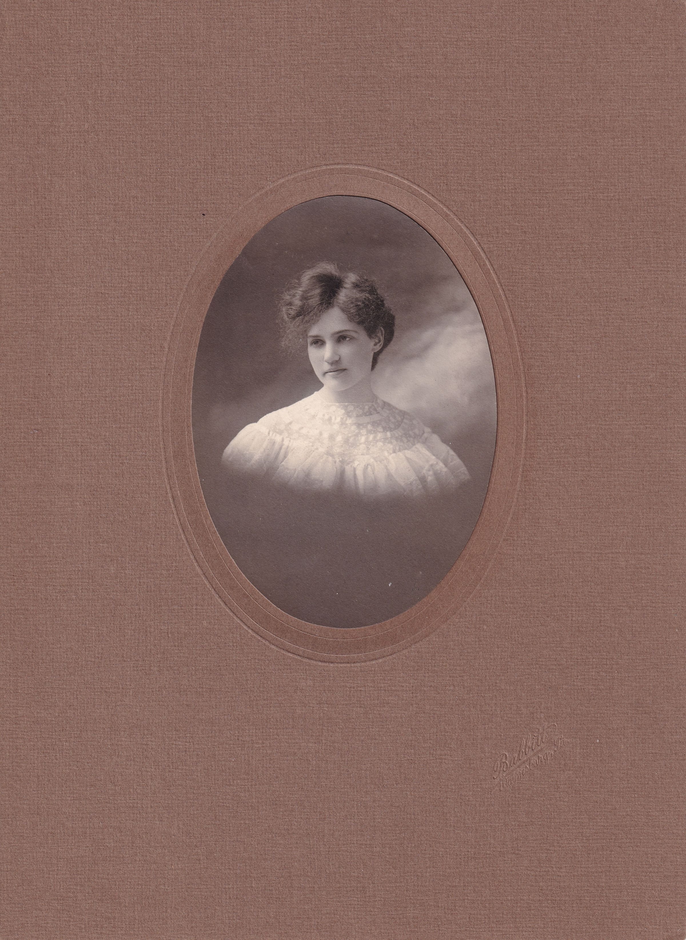 SOURCE CITATION: Margaret Morris (Rinehart) (Strawn) Voorhis [1884-1982], Waynesburg College, Class of 1906; circa 1906, image by Babbitt, Waynesburg, Pa.; item no. WAYN_AN001_1906_0006, Waynesburg University Paul R. Stewart Museum Collection; Greene Connections Archives Project (GreeneConnections.com).