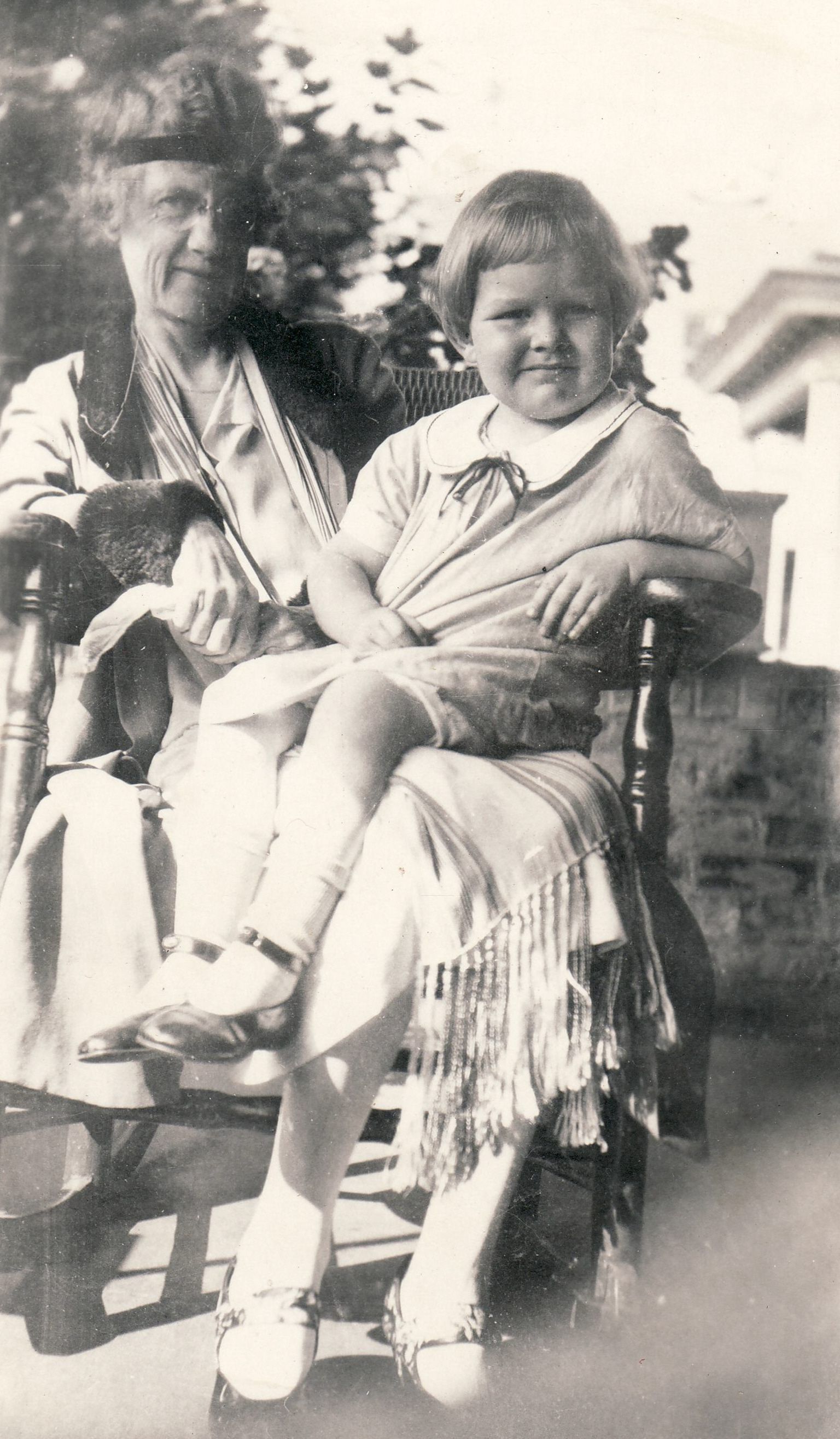 Source Citation: Margaret Rozella (Smith) Hoskinson with her granddaughter Peggy Louise Baily, item no. CAND-AN011-0001-0018, Hoskinson Series donated by Karen Maset, Candice Lynn Buchanan Collection, Greene Connections Archives Project (www.GreeneConnections.com).
