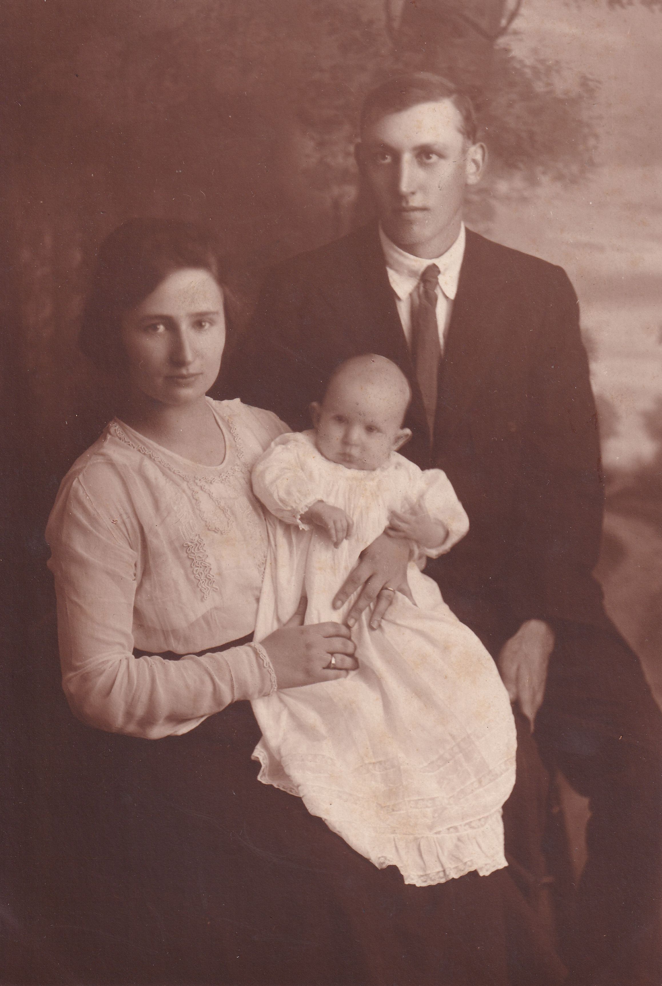 SOURCE CITATION: Marshall Albert McCann [1895-1956] and Mary (Vance) McCann [1898-1987] with their daughter, Helen (McCann) Miller [1919-1984]; circa 1919-1920; item no. MILB-AN001-0006-0026, Vance Series, Mary (Vance) McCann Collection, shared by her grandson, William Marshall Miller; Greene Connections Archives Project (www.GreeneConnections.com).