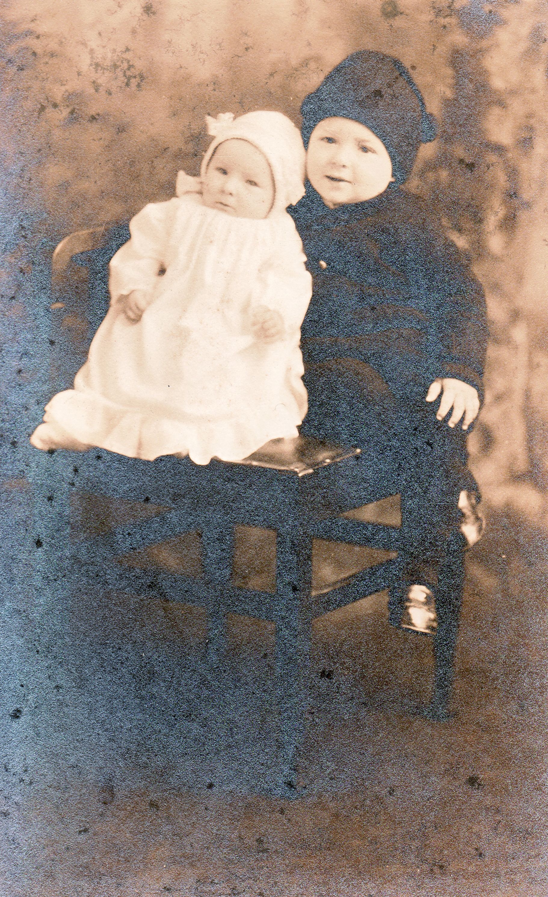 SOURCE CITATION: [Left-Right]: Martha Jane (Orndoff) Martin [1916-2007] and William Clarence Orndoff [1914-1996] - children of Eli Blaine Orndoff and Goldie Agnes Carpenter; circa 1916-1917, image by Babbitt, Waynesburg, Pa.; item no. CARP-AN005-0067, Sellers Burdette and Bettie (Blake) Carpenter Collection, shared by their heirs; Greene Connections Archives Project (GreeneConnections.com).