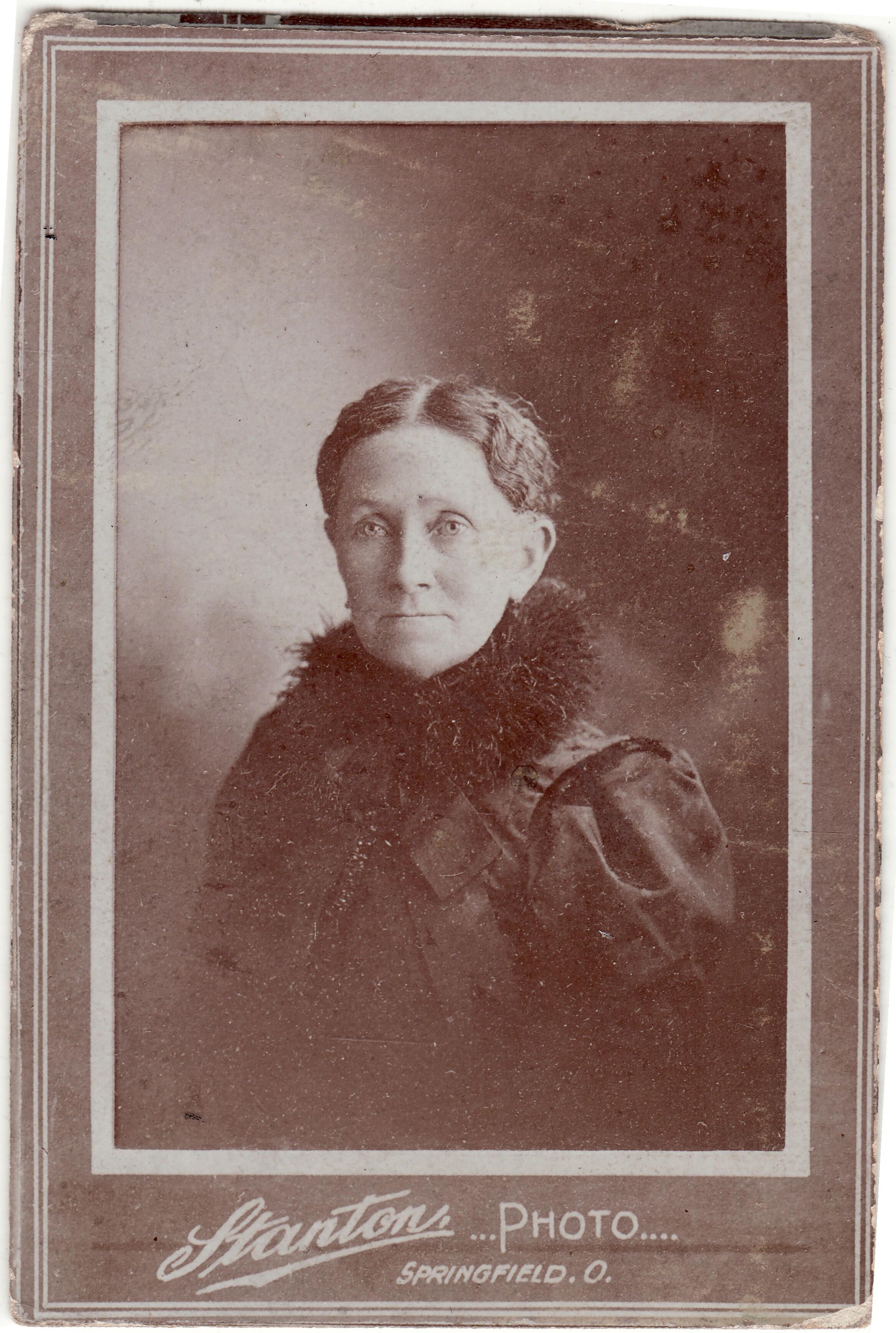 SOURCE CITATION: Mary (Supler) Ackley [1847-1911]; original image taken by unknown photographer, circa 1890-1900, and reproduced, circa 1905, by Stanton Portrait Co., Springfield, Ohio; item no. SUPL-AN002-0003, Supler Series, Wayne Carl Swart Collection, Greene Connections Archives Project (www.GreeneConnections.com).