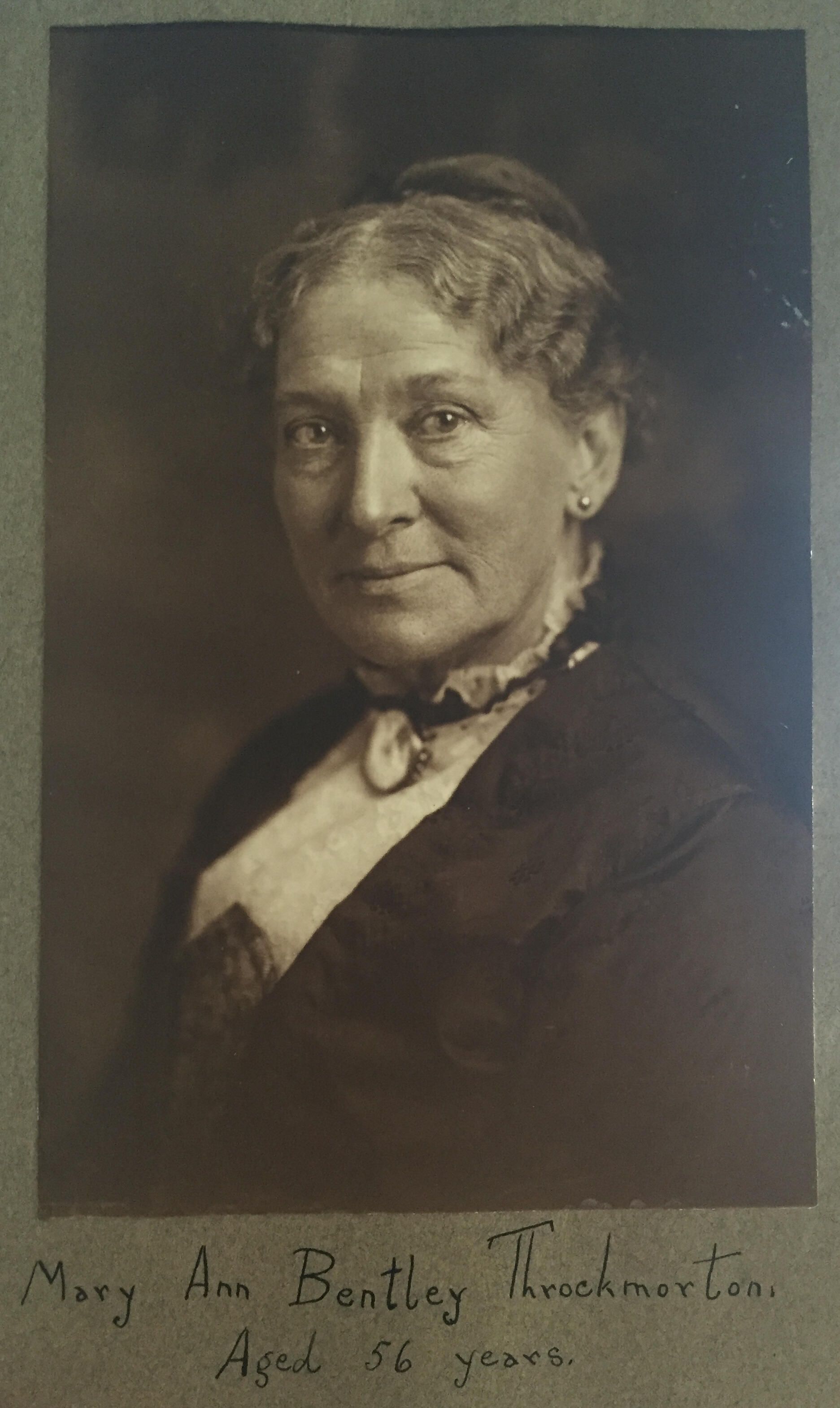 Source Citation: Mary Ann (Bentley) Throckmorton [1858-1927], item no. THRJ-AN001-0044, Throckmorton-Bentley Genealogy Series, Dr. Jeannette Franc Throckmorton Collection, Greene Connections Archives Project (www.GreeneConnections.com).