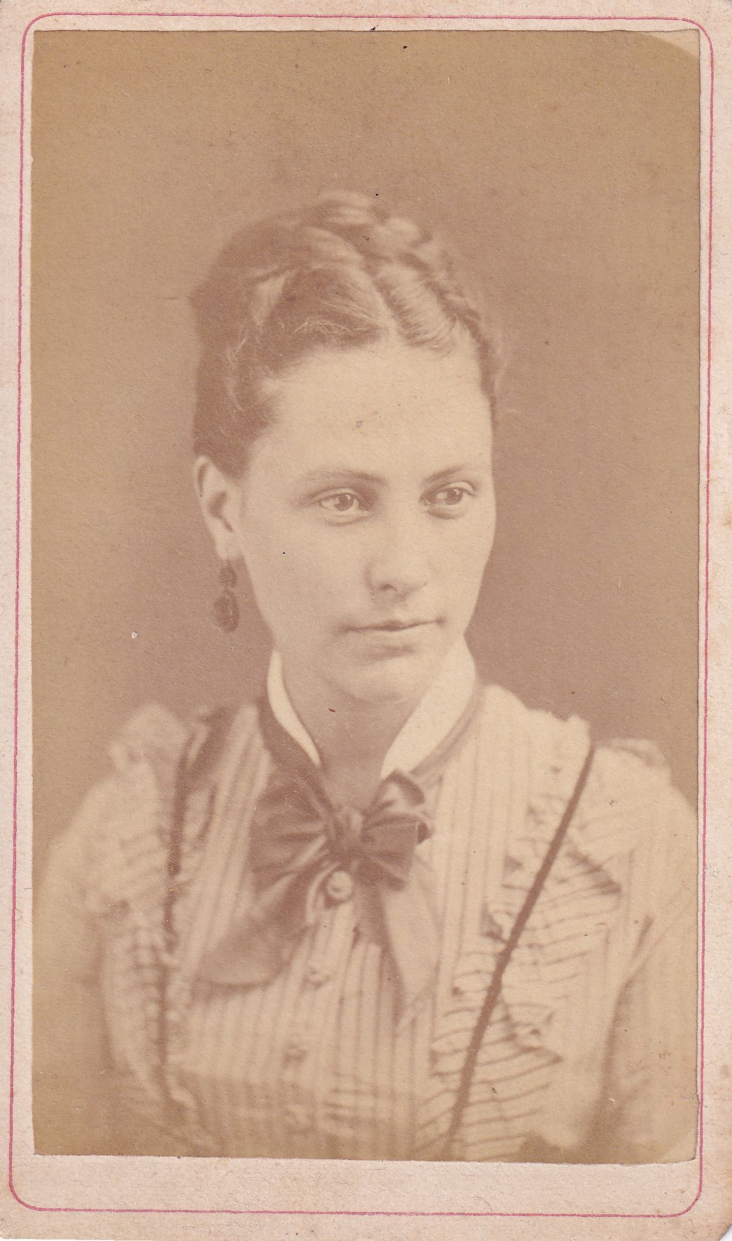 Carte-de-visite of Mary Bell "Belle M." Day [1852-1894], Waynesburg College, Class of 1871 - daughter of Allison O. Day and Hannah Jane Bell.