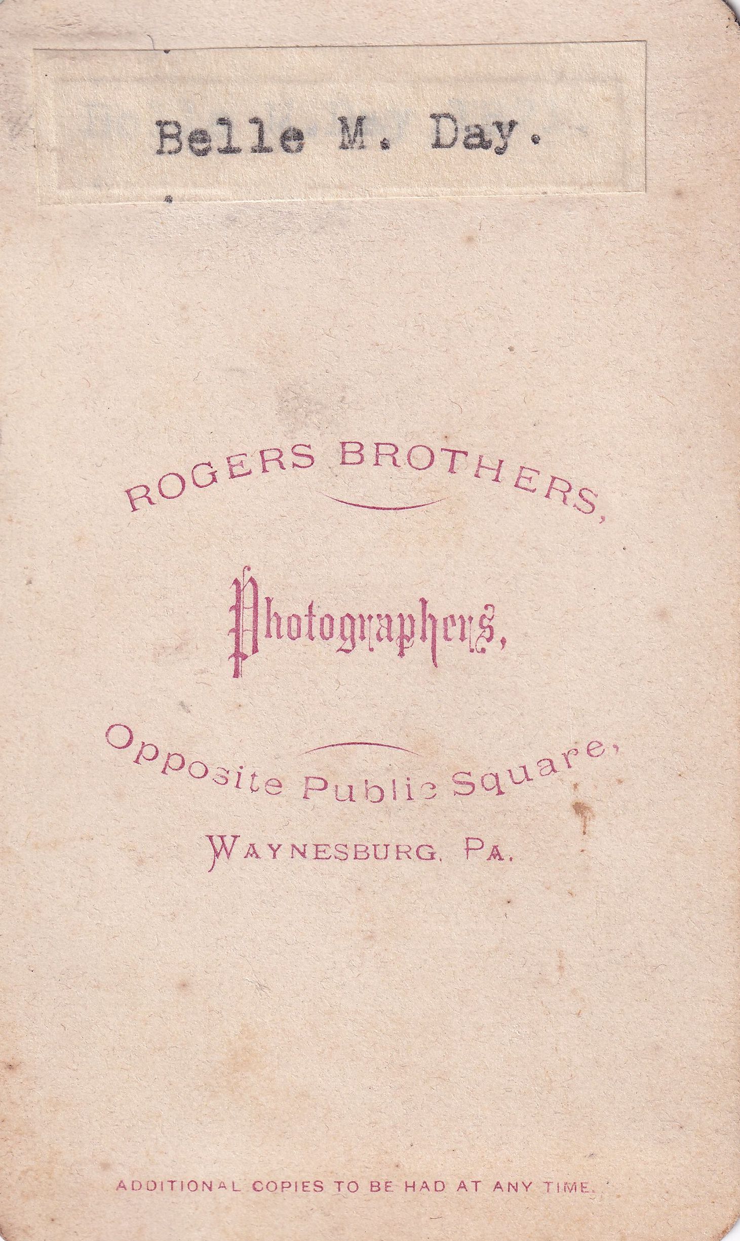 Original, professional photograph from Rogers Brothers, Photographers, Opposite Public School, Waynesburg, Pa.Photograph Details