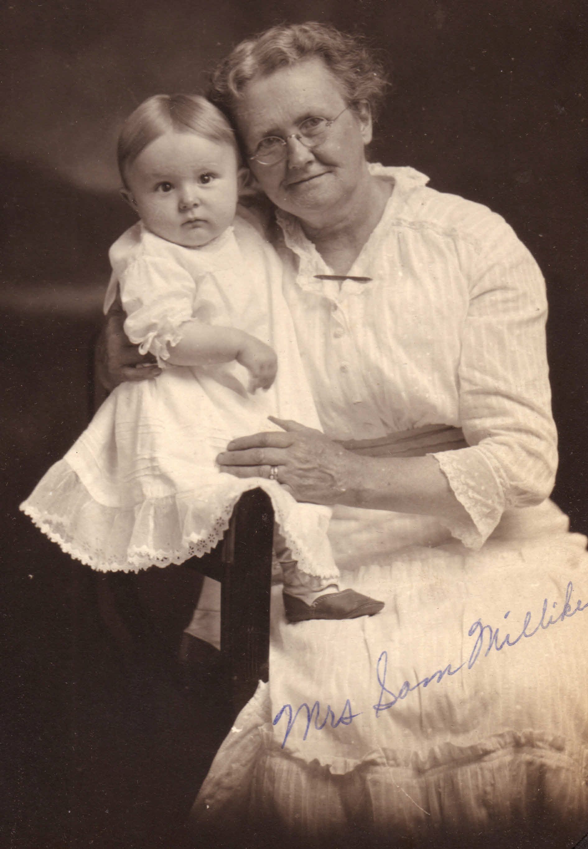 Source Citation: Mary Ellen (Smith) Milliken holding one of her grandchildren, item no. RINE_AN003_0001, Russell Rinehart Collection, shared by Albie Rinehart, Greene Connections Archives Project (www.GreeneConnections.com).