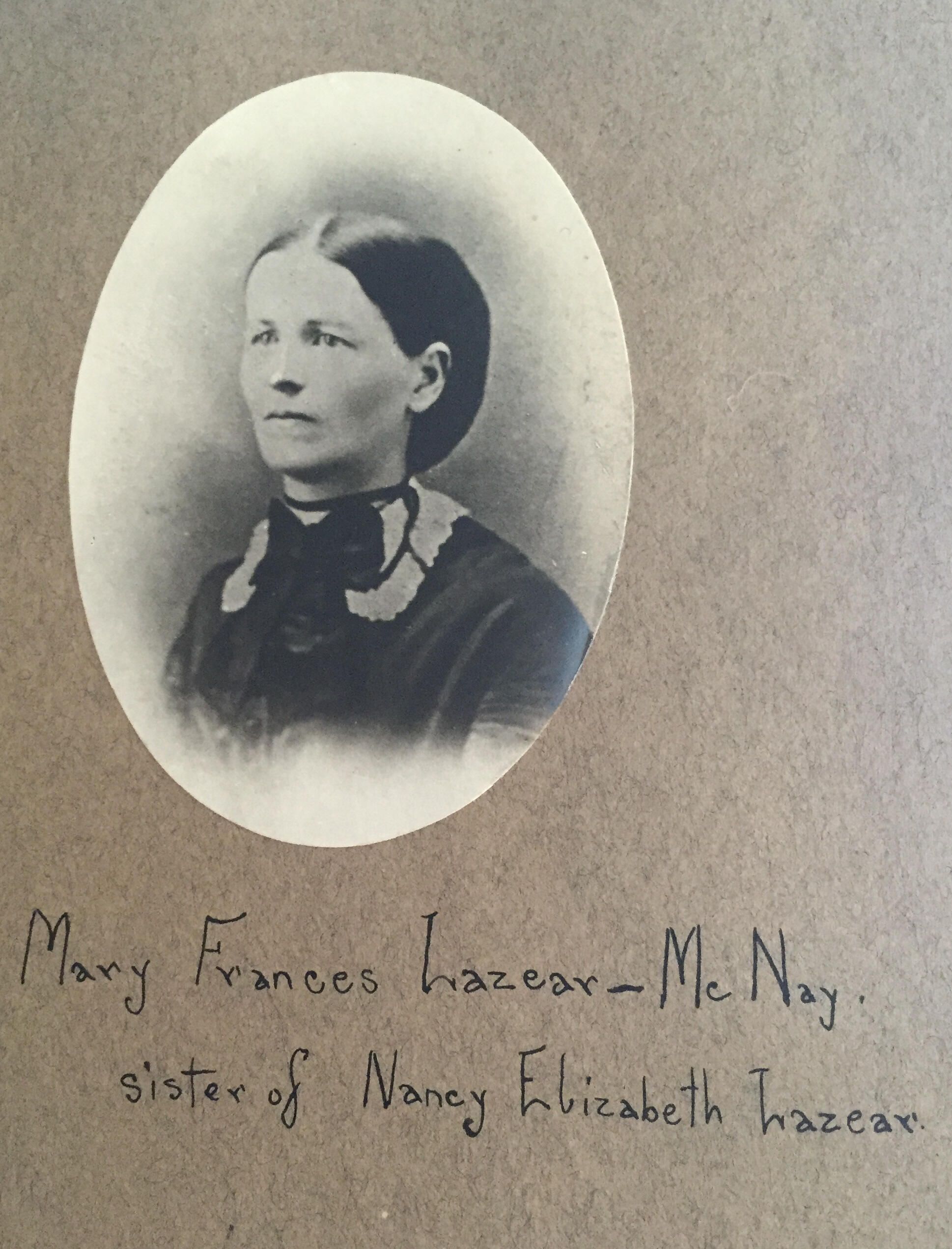 Source Citation: Mary Frances (Lazear) McNay [1841-1880], item no. THRJ-AN001-0012, Throckmorton-Bentley Genealogy Series, Dr. Jeannette Franc Throckmorton Collection, Greene Connections Archives Project (www.GreeneConnections.com).