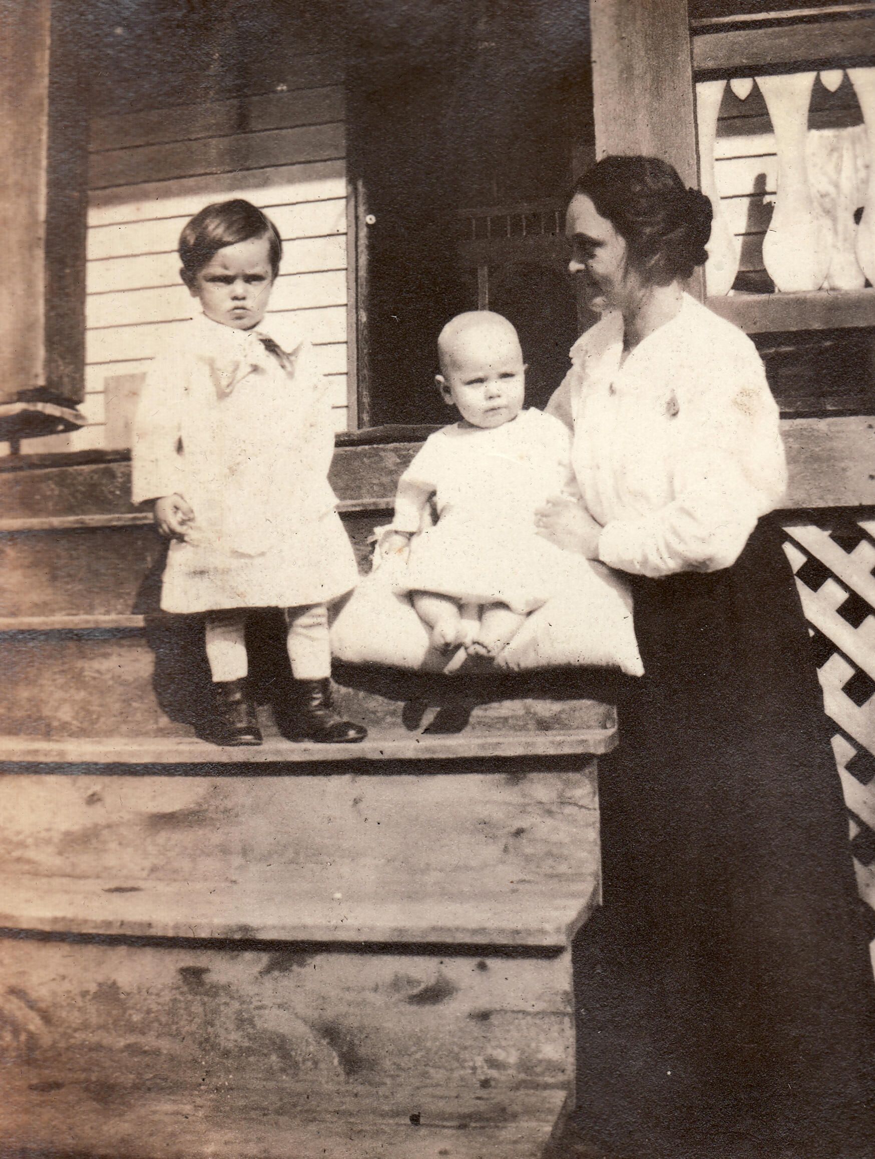 Source Citation: Mary "Mamie" (Throckmorton) Bonham with her nephews, [Left-Right] William Harvey Hartzell and Robert Lawrence Throckmorton Jr.; item no. TOOK_AN001_0052, Katherine Jane (Throckmorton) Toothman Collection; Greene Connections Archives Project (GreeneConnections.com).
