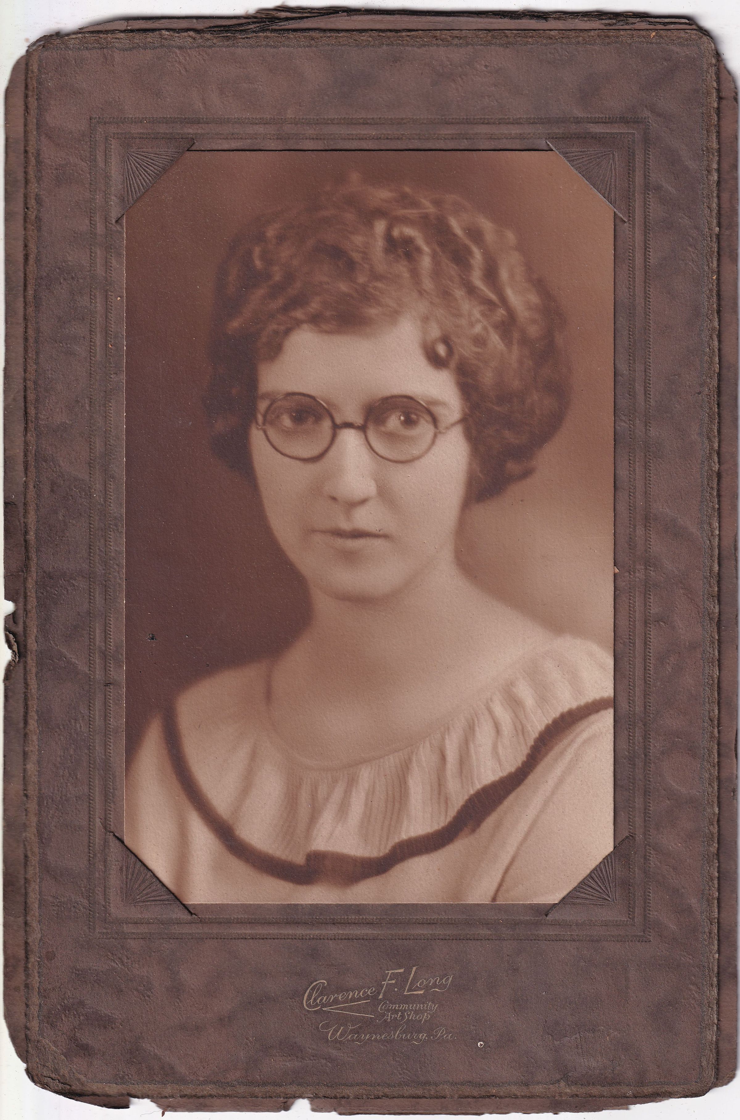SOURCE CITATION: Mary Margaret (Morris) Scott [1901-1982]; circa 1920-1930, image by Clarence F. Long, Community Art Shop, Waynesburg, Pa.; item no. MORS-AN001-0004, Morris Series, Ruth Cecilia (Morris) (Shultz) Minor Collection; Greene Connections Archives Project (GreeneConnections.com).